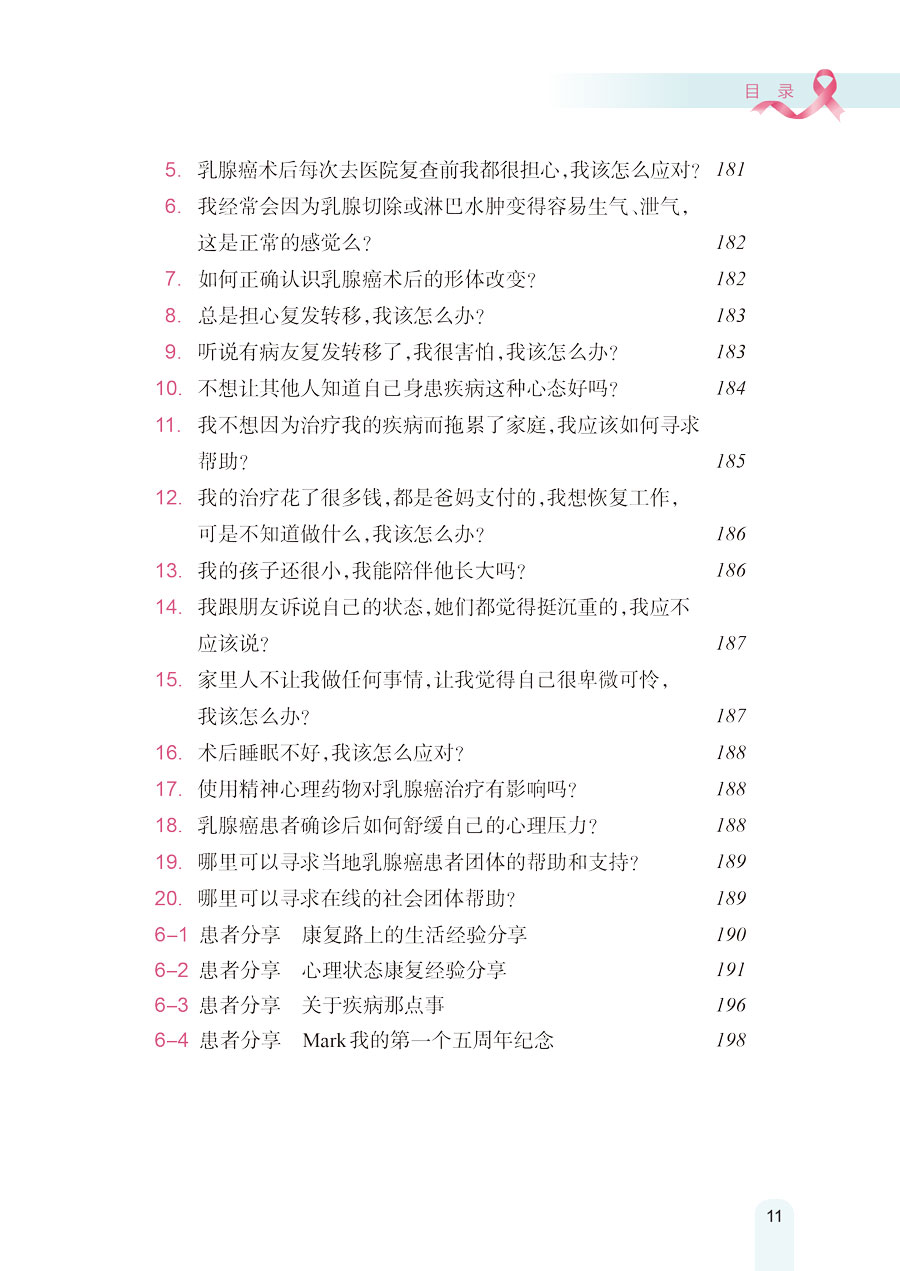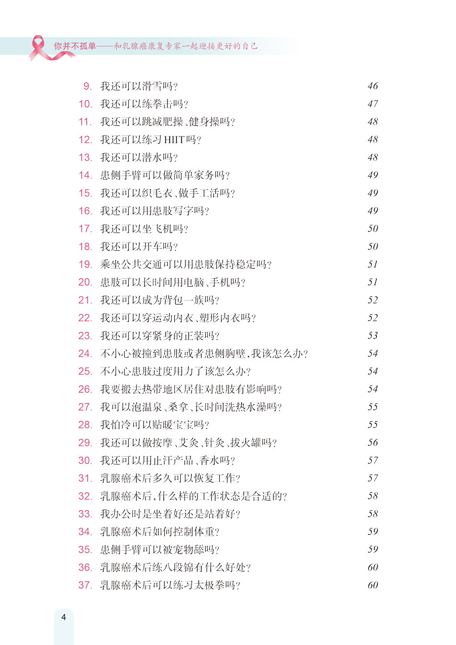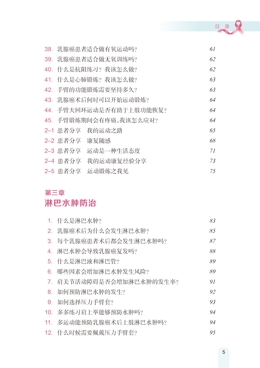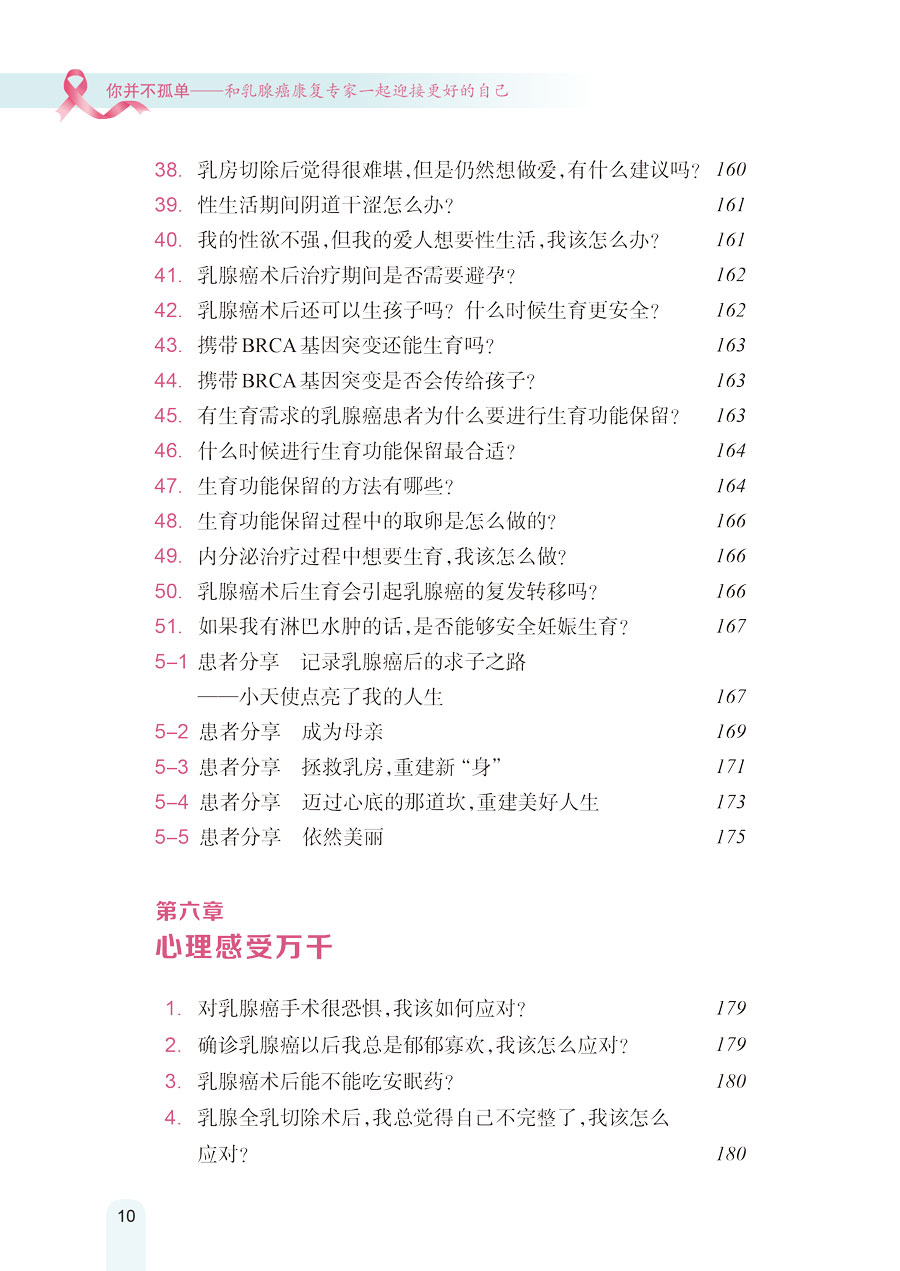 本书集合了众多乳腺癌领域及康复护理领域的资深专家,梳理临床诊治尤其是康复过程中患者提问频率最高的话题,采用一问一答的形式予以解答。本书对术后的治疗随访、功能康复、心理健康、淋巴水肿防治、日常饮食宜忌、外形维护等领域的问题进行细致入微的解答,让乳腺癌患者生存期延长的同时,所伴随的疾病也获得及时有效的诊断与治疗,患者的生存质量亦能得到显著提高。本书同时也收集了众多康复之路上稳健前行的患者分享的经验与感悟,这些经验与感悟充满了对生命的热爱和对病友的关怀,为正在康复之路上彷徨的患者提供了有力的支持。