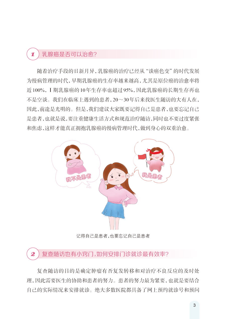 乳腺癌患者术后会面对从生理到心理、从形体到生育、从家庭到社会等各方面的问题。复旦大学附属肿瘤医院倡导的乳腺癌康复旅程,提倡患者全方位、全周期管理,帮助患者实现康复和回归正常生活的目标,医院的众多专家期待能通过这本书,进行乳腺癌康复的临床管理与科普宣传,共同为乳腺癌患者的康复助力。