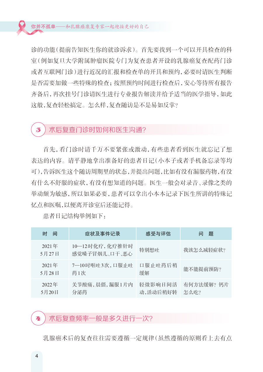 编者想通过这本书传递给读者的信息是,得了乳腺癌,你不是孤身一人,医护与康复专家与你同在、众多的兄弟姐妹也与你同在,他们都将会为你的未来加油鼓劲,为你的康复保驾护航。