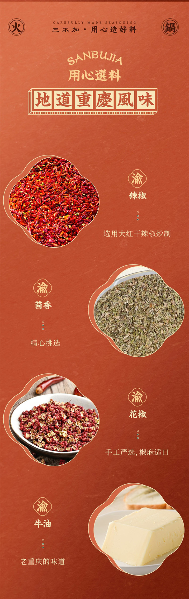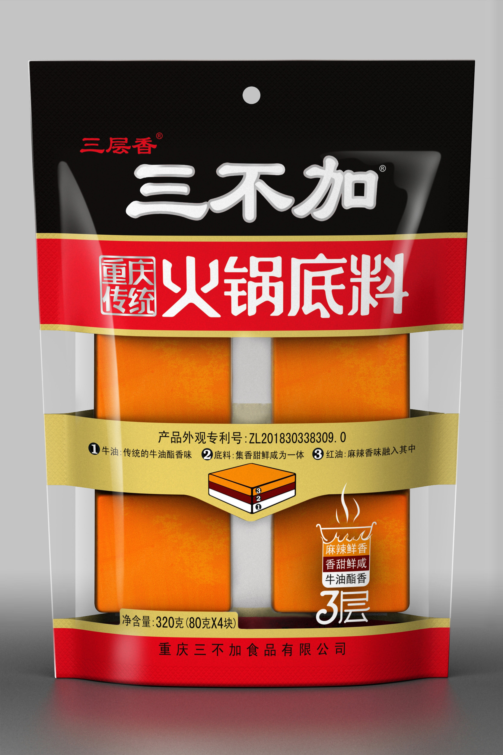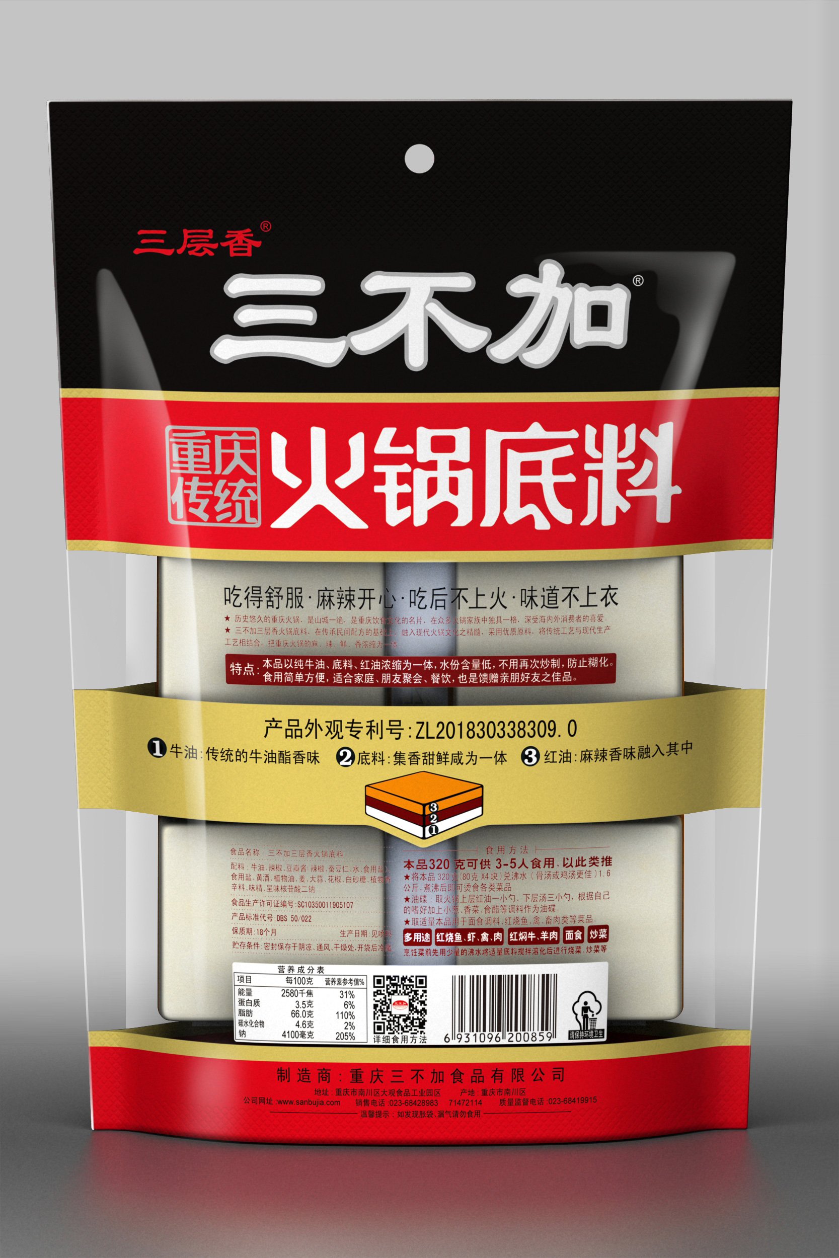 【三不加厂家直发】重庆特产,牛油老火锅底料,真材实料,三不加三层香火锅底料320g,包装有红袋和黑袋,随机发货!