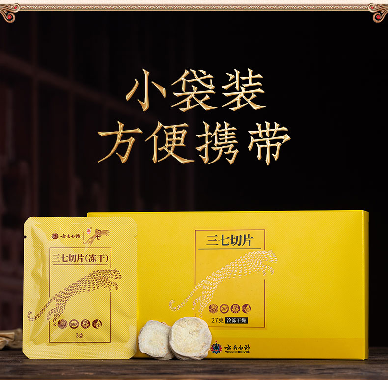 【官方正品】云南白药豹七冻干三七切片3g*9袋小袋装冻干工艺皂苷高留存可泡水嚼食