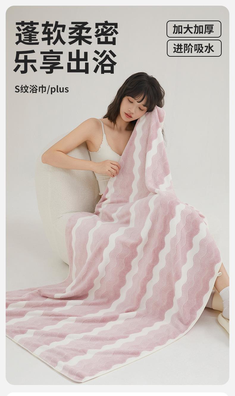 三利浴巾90*170加大加厚浴巾跨境宽条彩浴巾吸水水波纹35*75毛巾