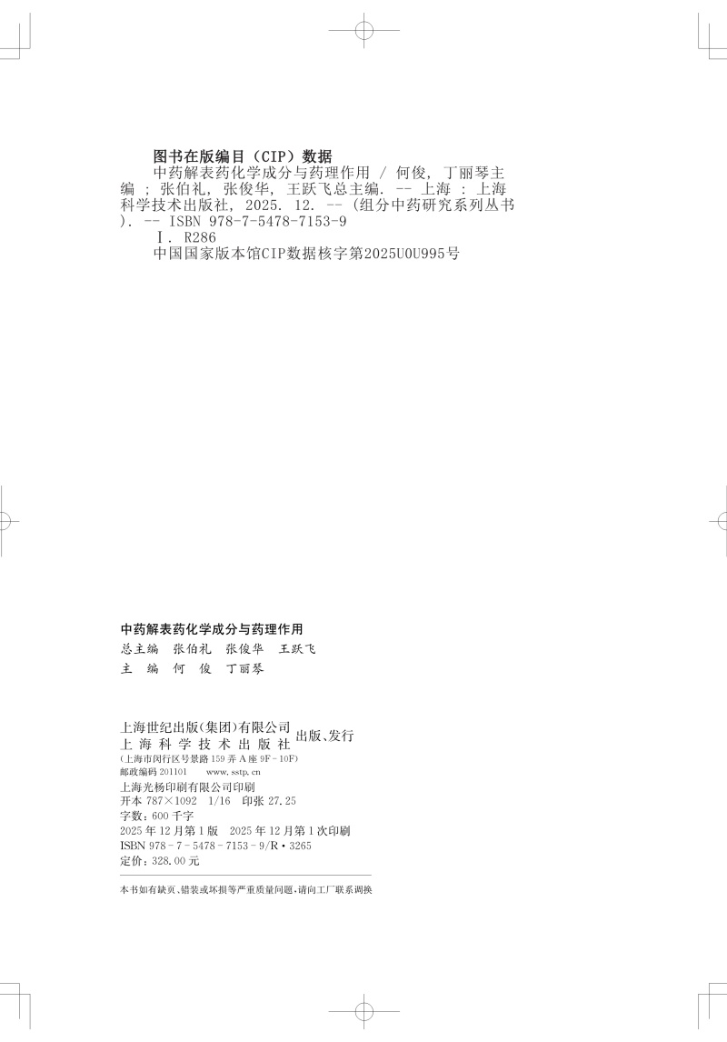 中药解表药化学成分与药理作用 组分中药研究系列丛书 何俊 丁丽琴 主编 本书收录27味解表药 9787547871539 上海科学技术出版社