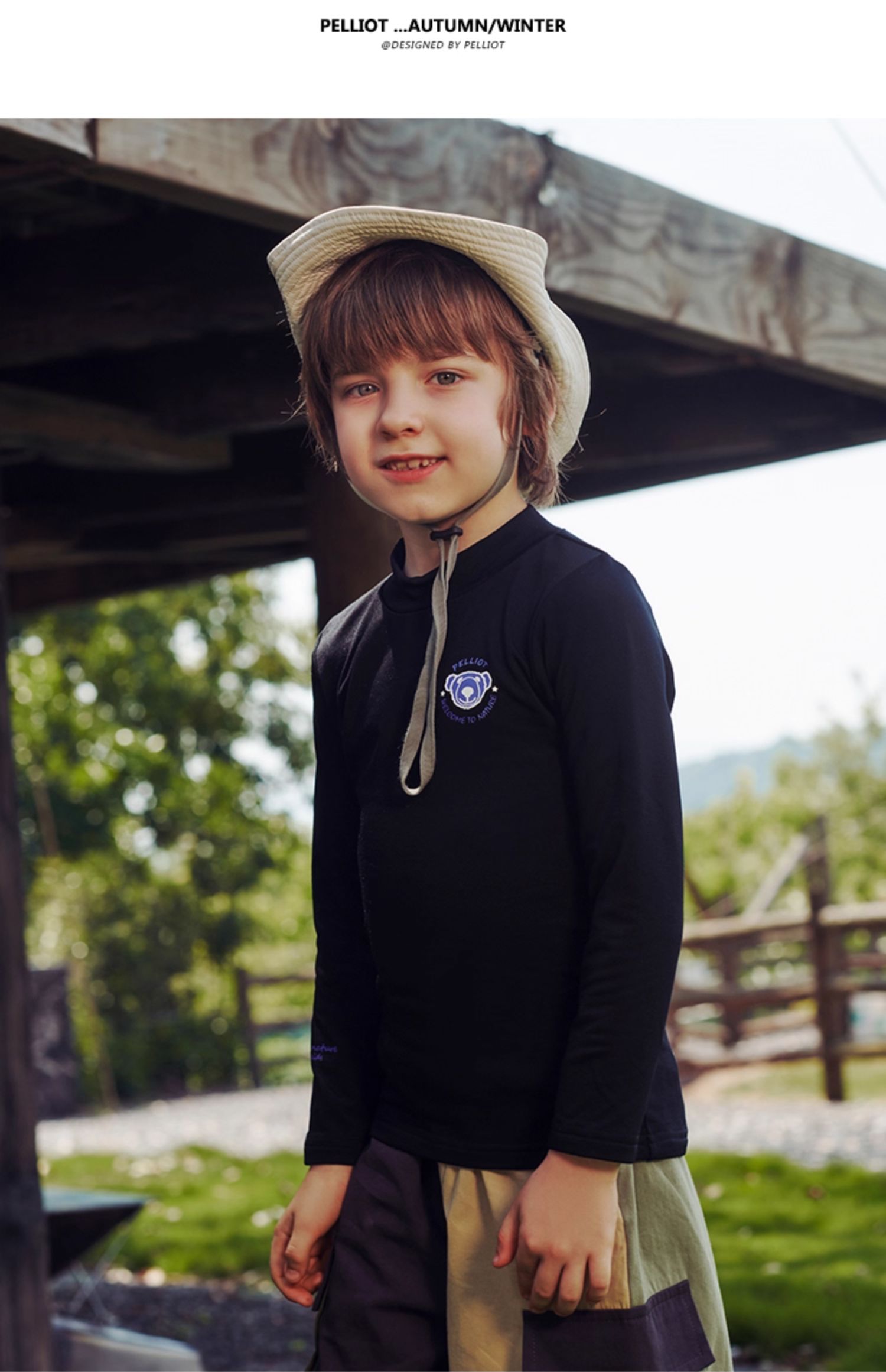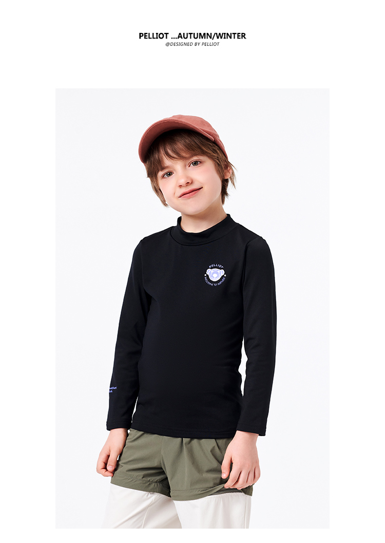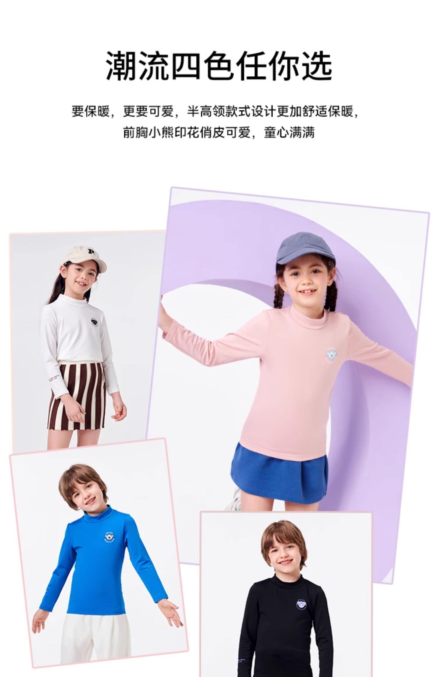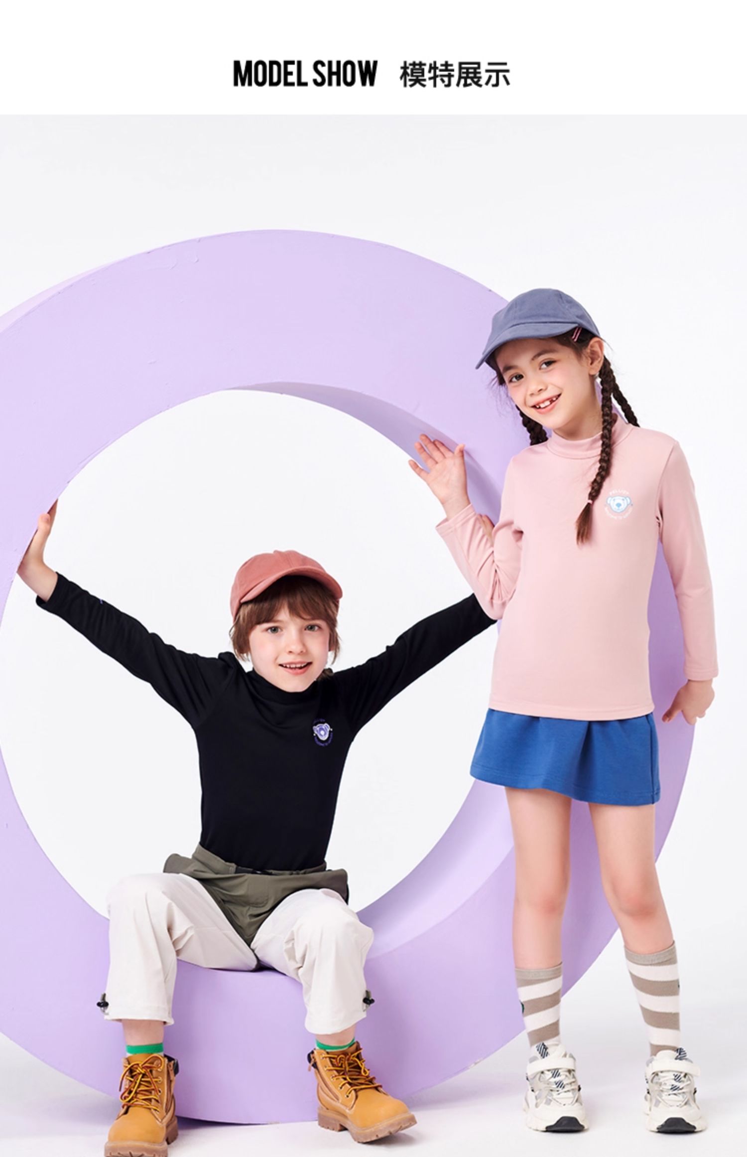 伯希和儿童长袖t恤男女童新款印花纯色打底内搭运动保暖可爱上衣