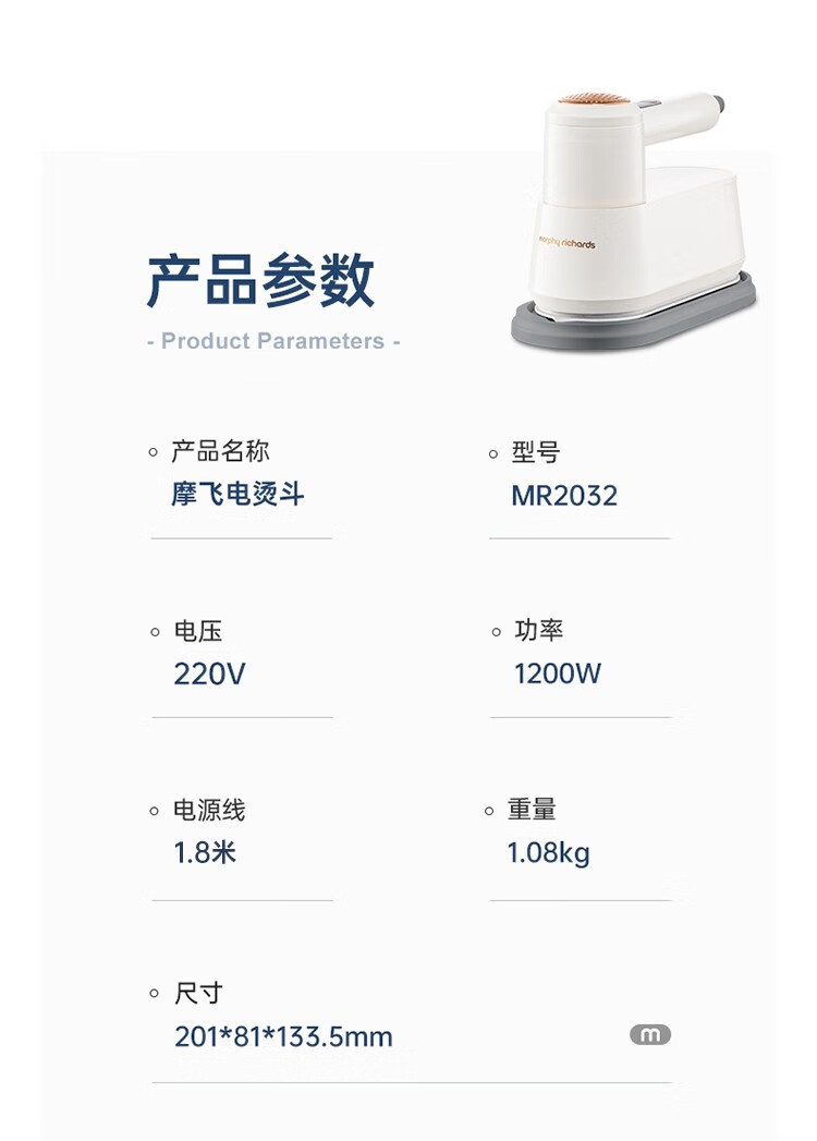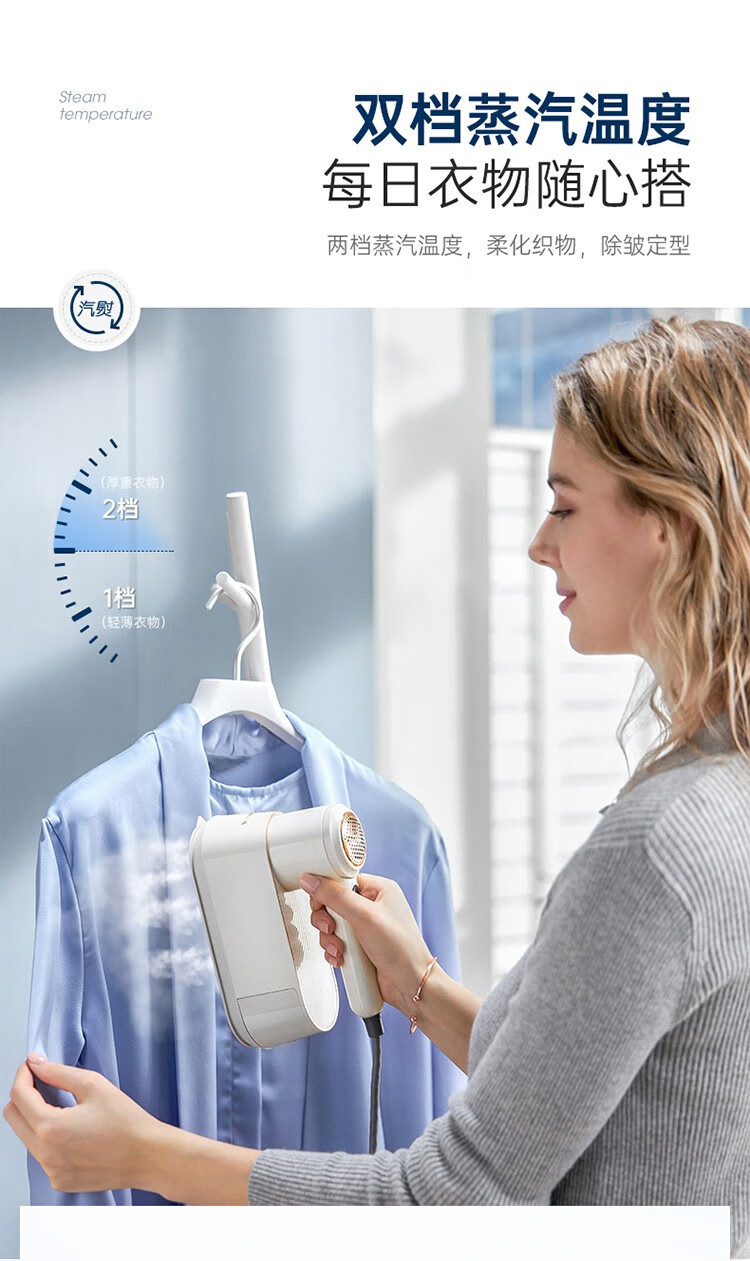 摩飞电器(Morphyrichards)熨烫机手持挂烫机家用小型蒸汽熨衣机电熨斗杀菌除螨MR2032 椰奶白
