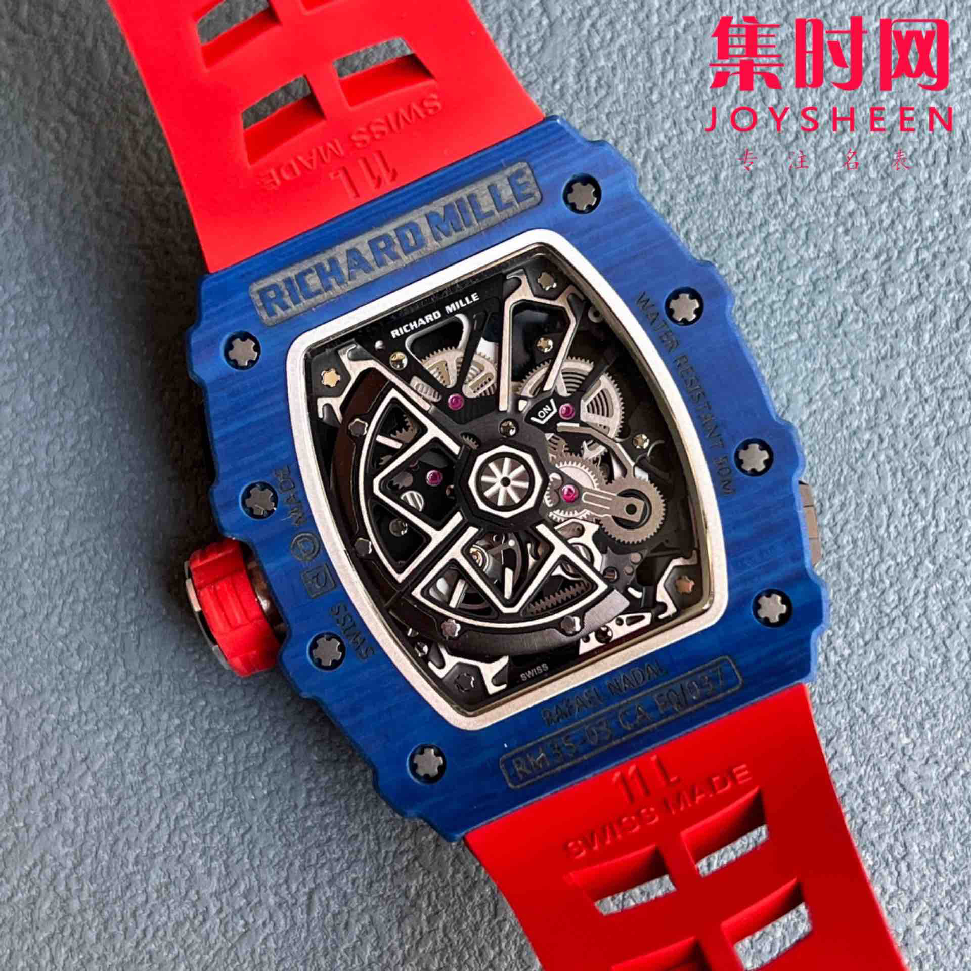 表带釆用马来西亚进口纯橡胶材料制作而成,使之呈现出超韧性及柔软的感觉,RM专用橡胶带,做到能与正品互换的效果