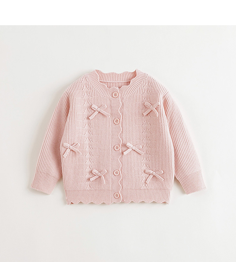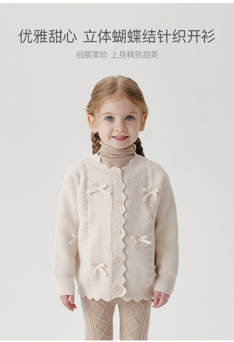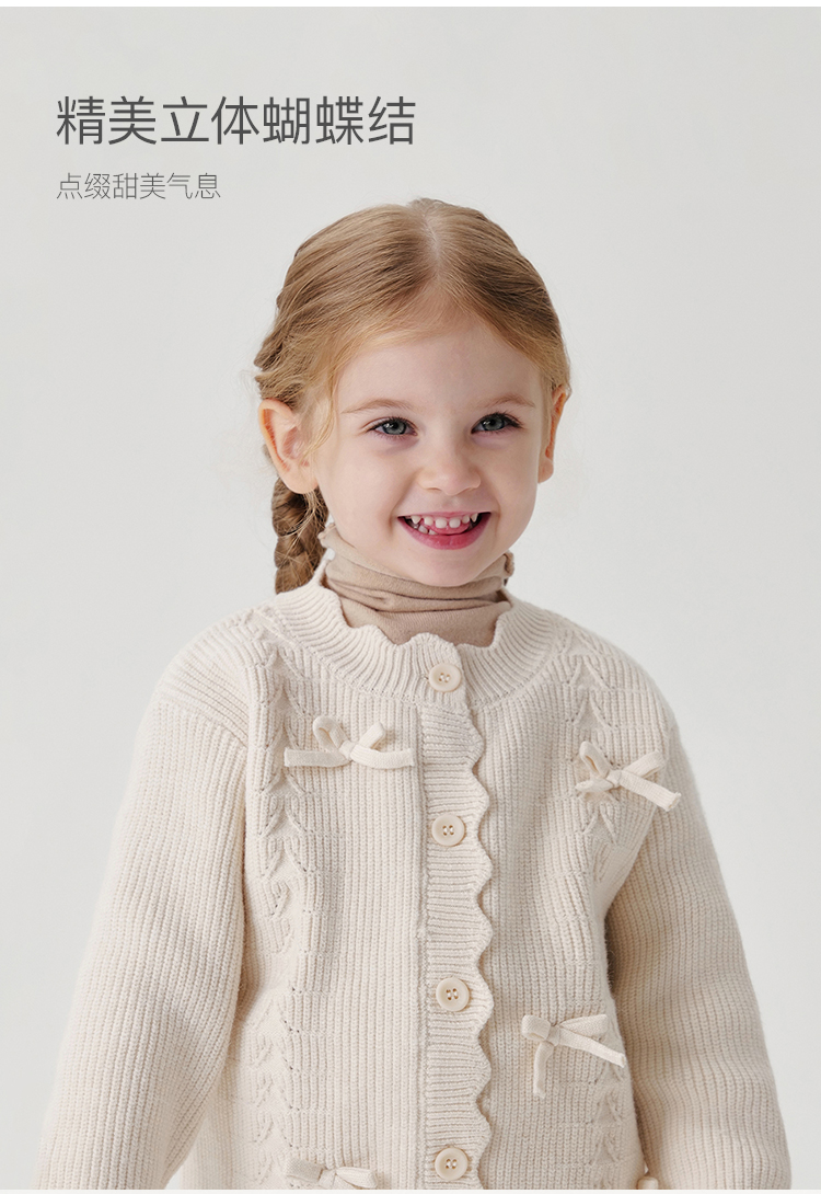 马克珍妮女童甜美优雅蝴蝶结针织开衫2024年秋季新款241050