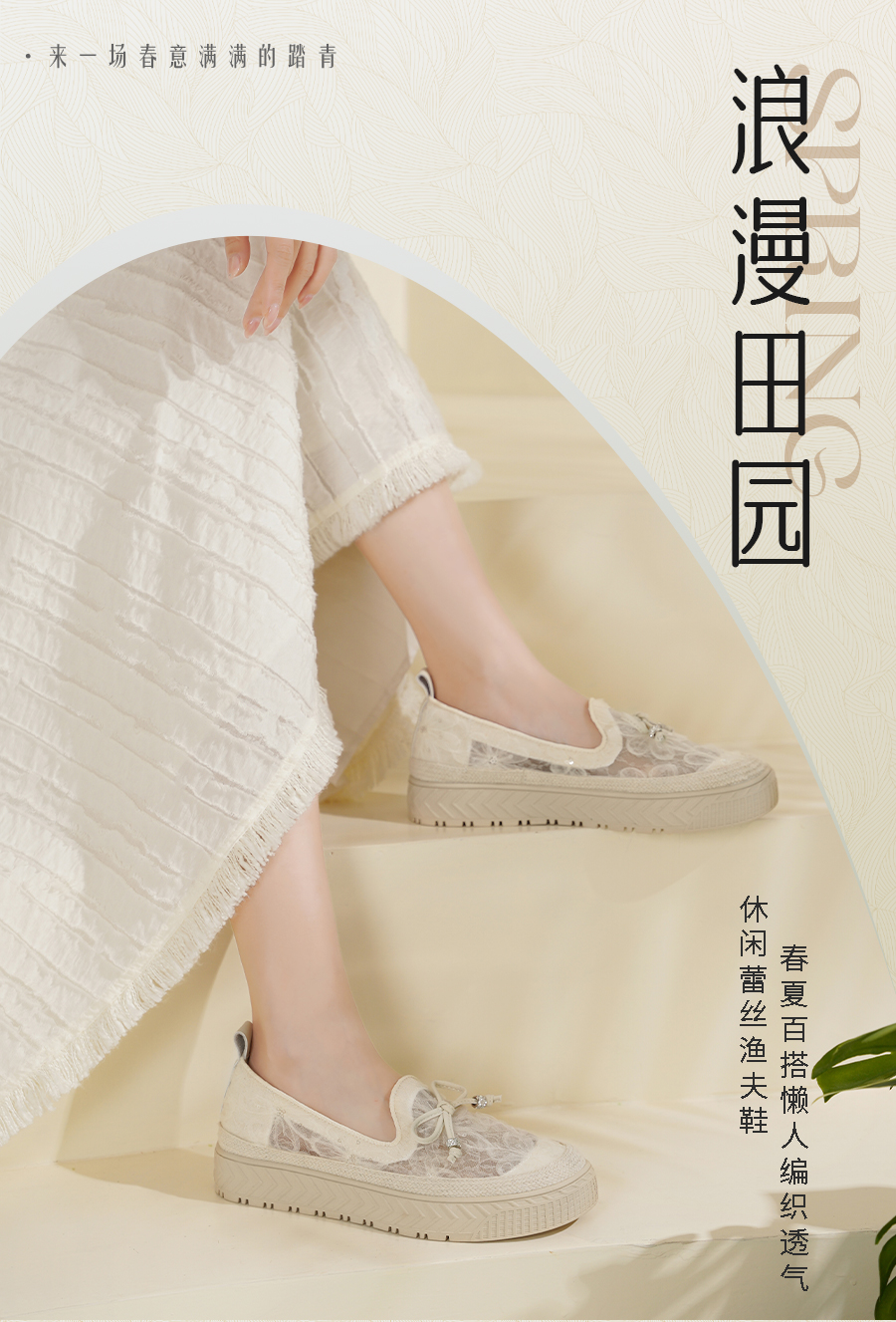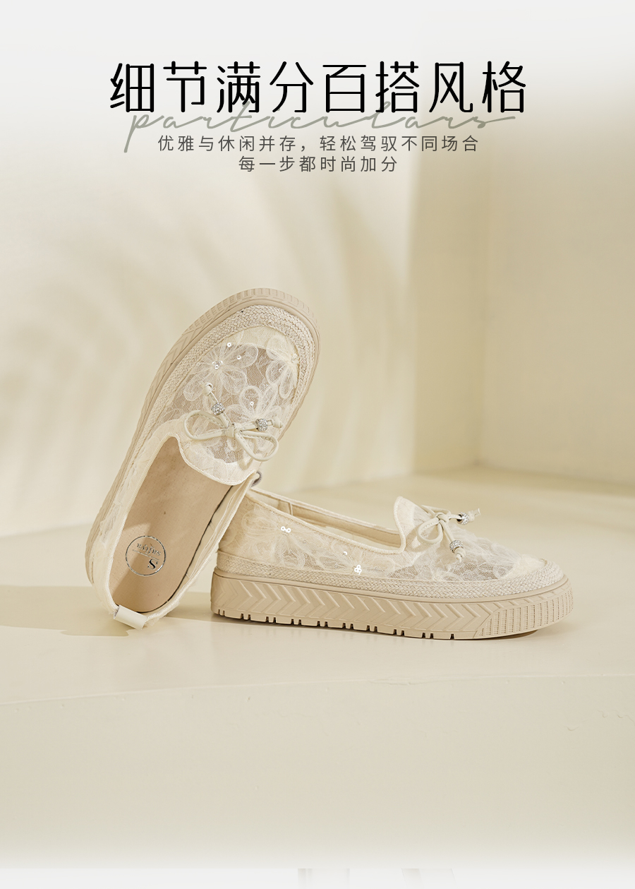 预售10天|Safiya/索菲娅2025春夏百搭懒人编织透气休闲蕾丝渔夫鞋SFD1112219