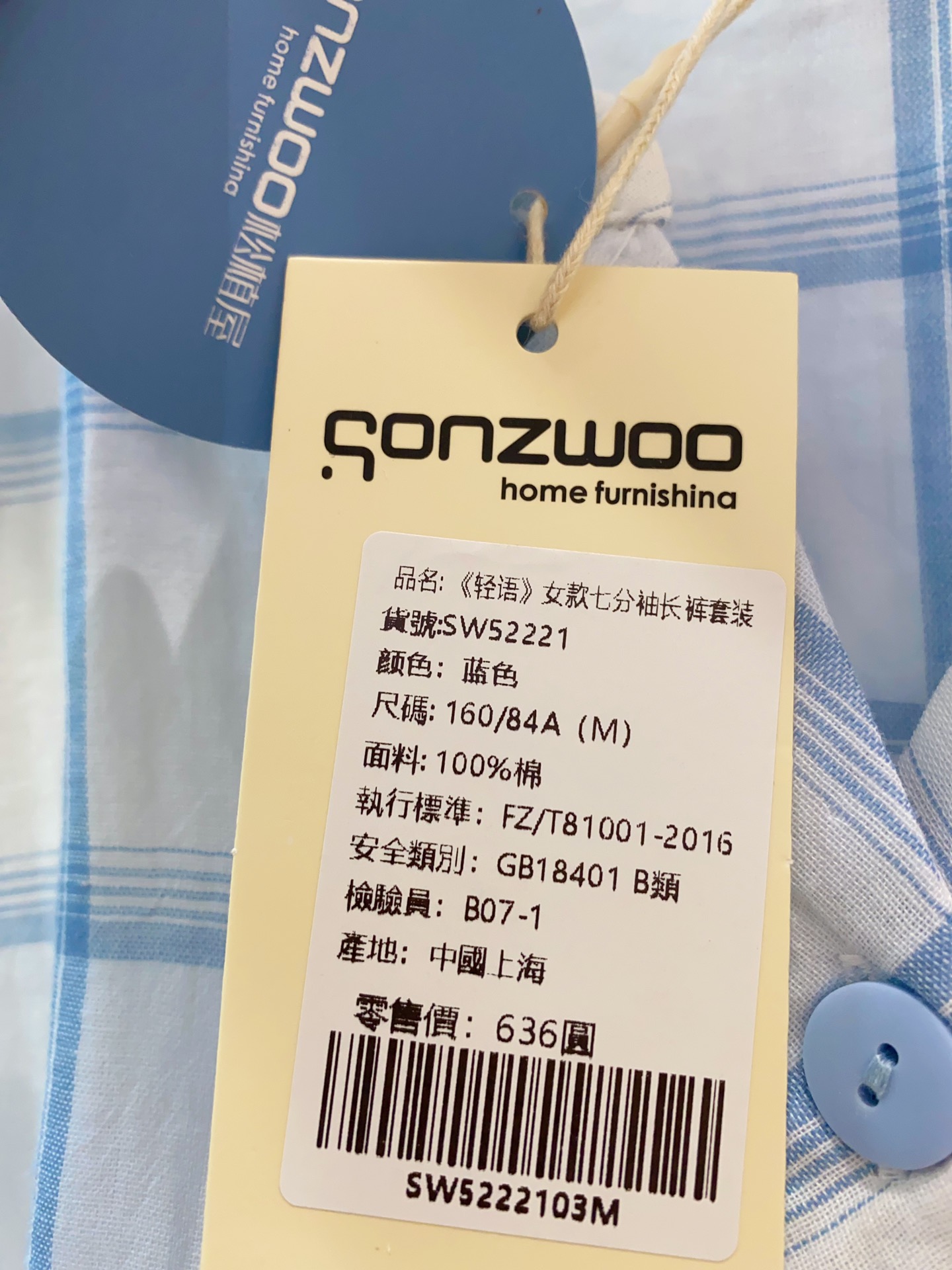 面料: 100%棉
