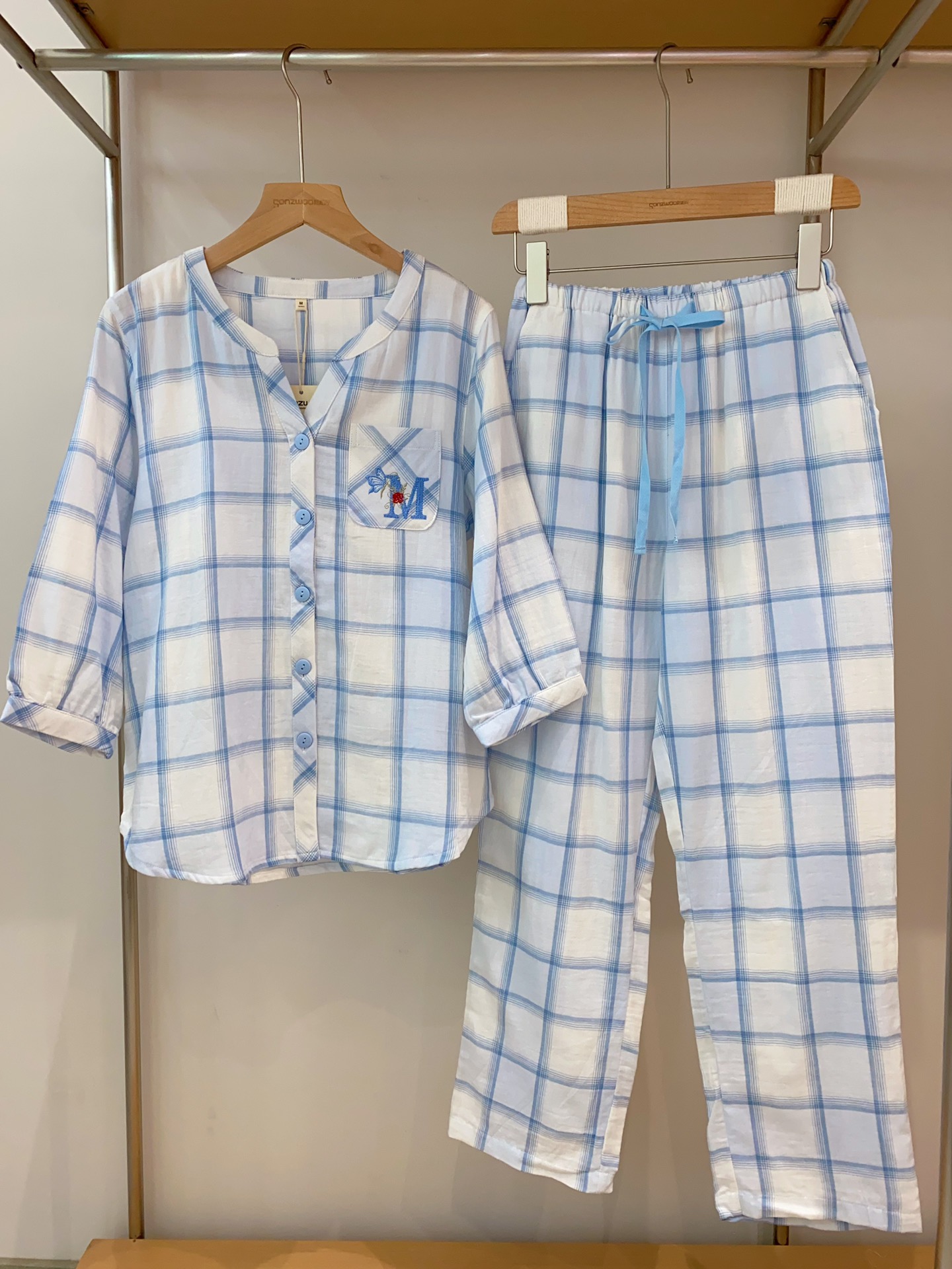 松植屋【轻语】女款七分袖长裤套装