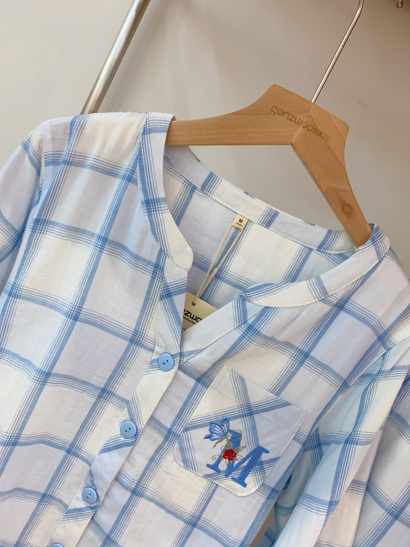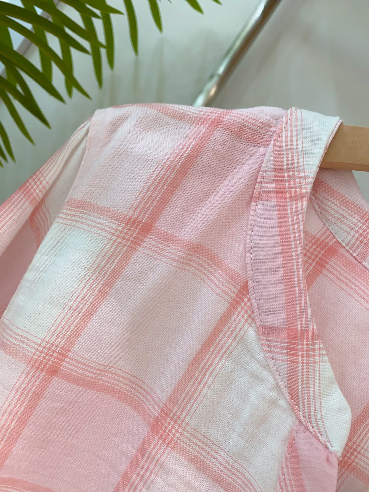 双层纱透气自带慵懒的肌理感,经典格纹是永不过时的甜系语言,领口的小V领设计添了几分雅致,口袋上的刺绣小细节更是精巧