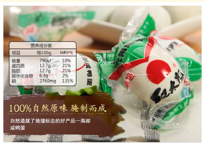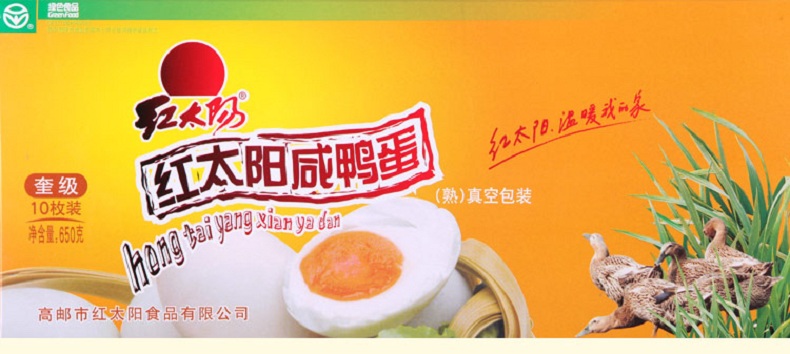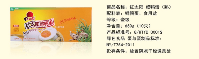 红太阳 高邮正宗红心流油咸鸭蛋奎级 10枚*65g 咸淡适中 高邮特产