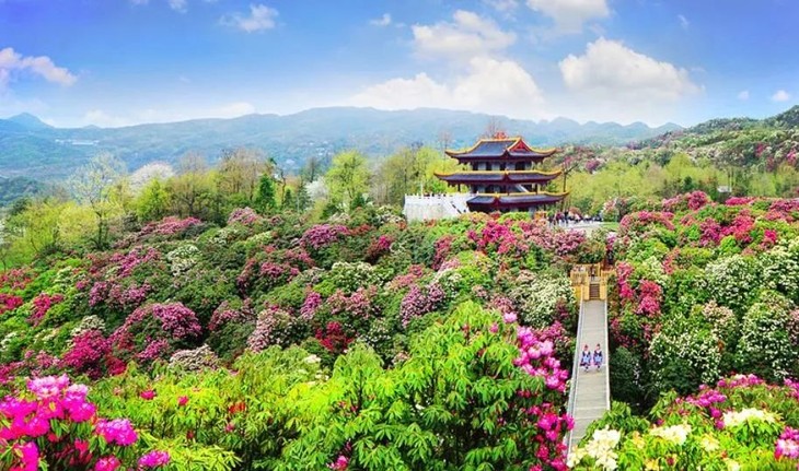 每年暮春时节,百里杜鹃花开成海。这个时候置身崇山峻岭之中。看腾挪跌宕、绵延百里的杜鹃花海,宛如人间仙境。