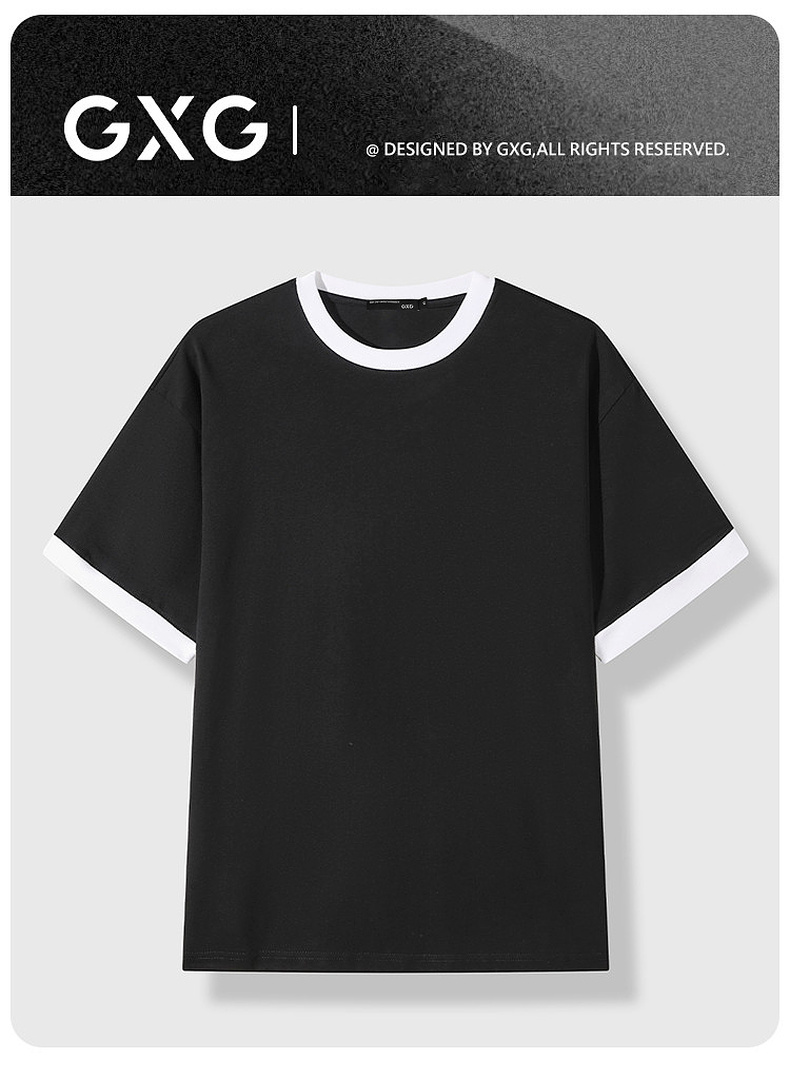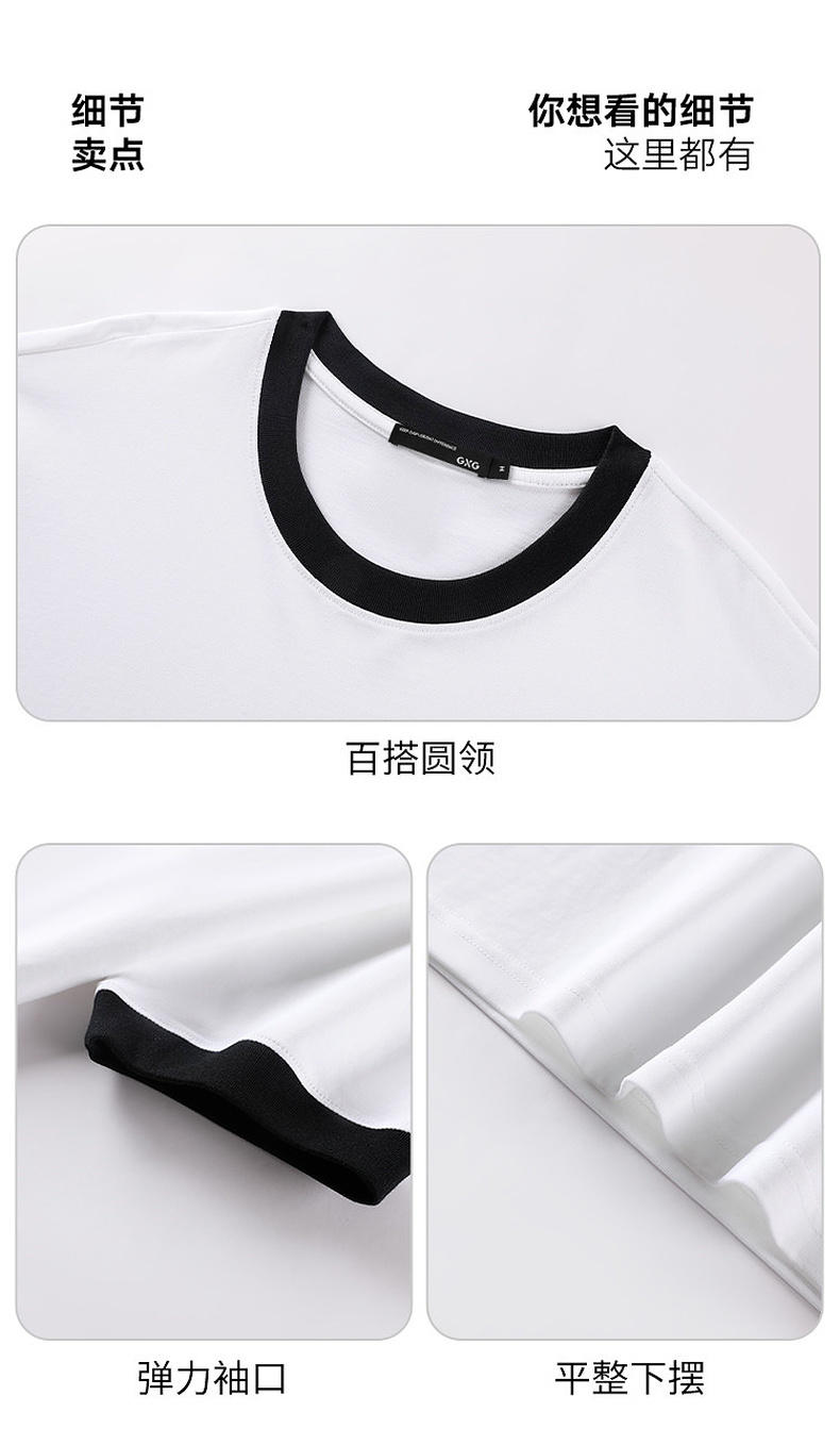 GXG男装夏季新款经典黑白撞色袖口休闲百搭情侣款圆领短袖T恤K&C