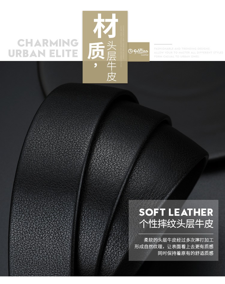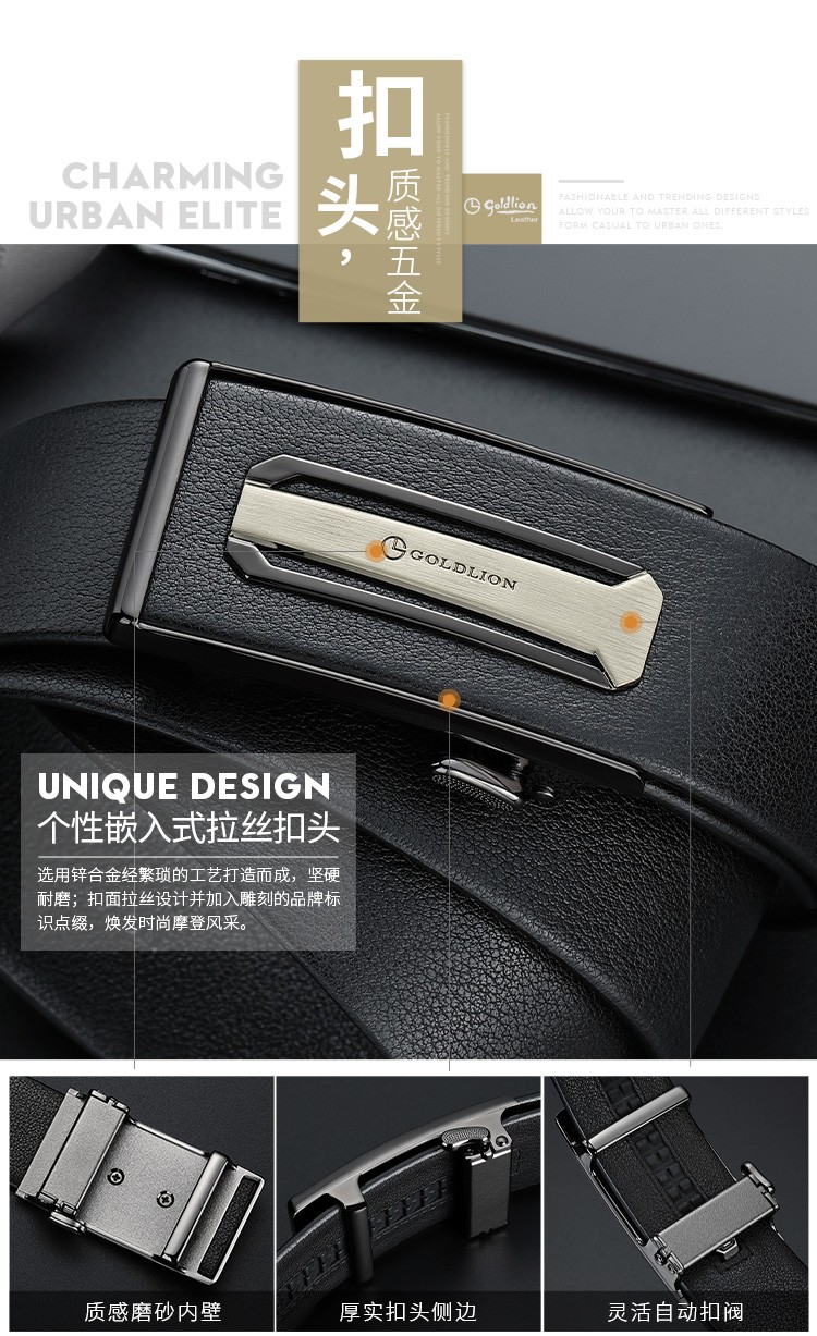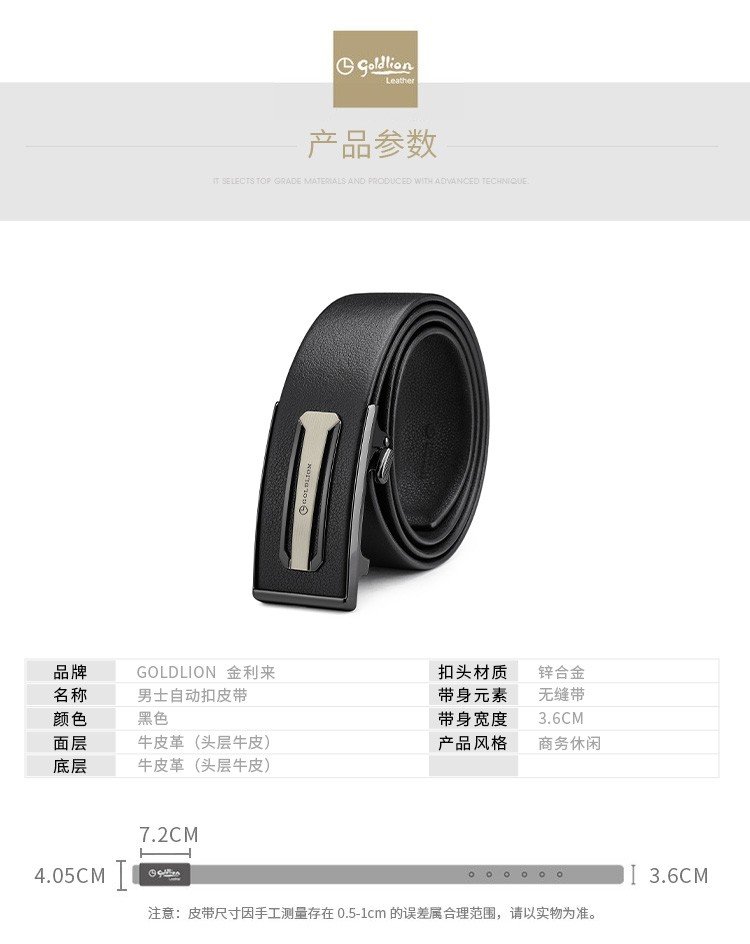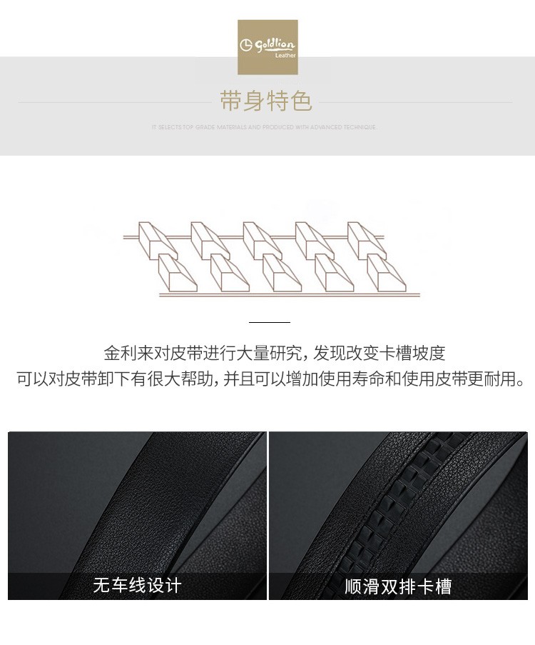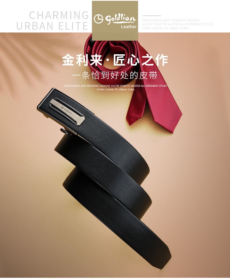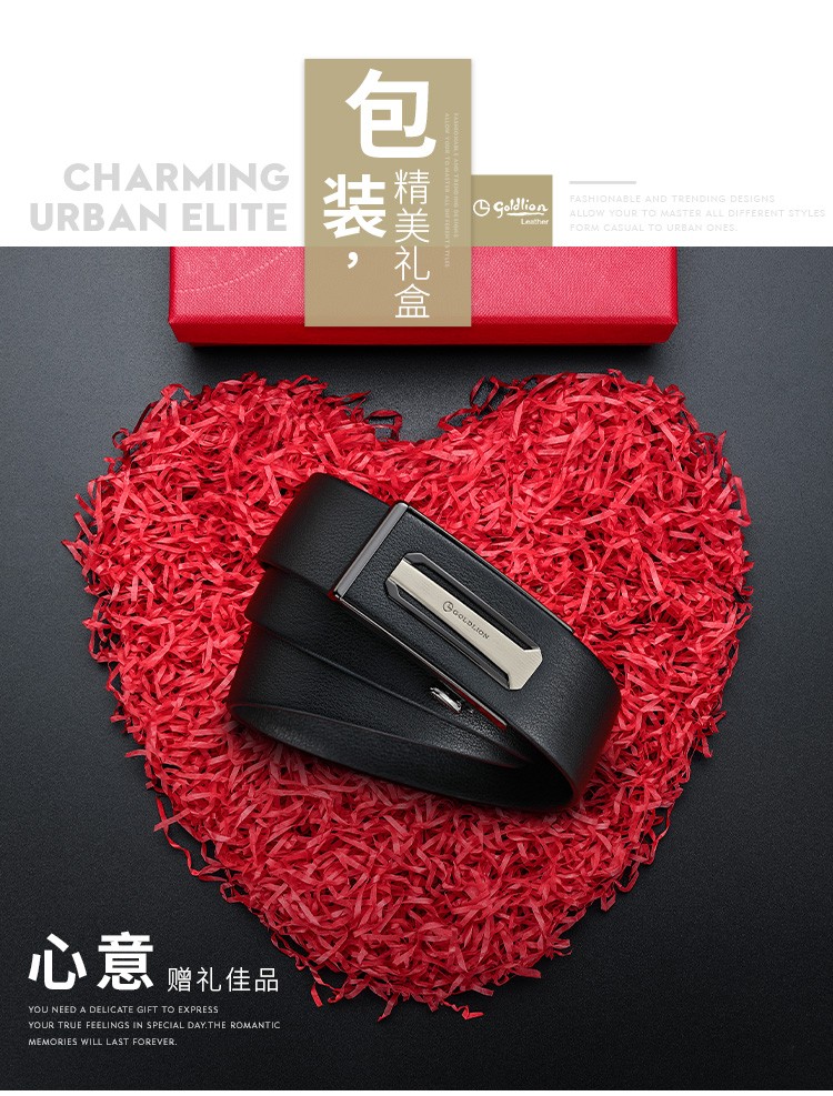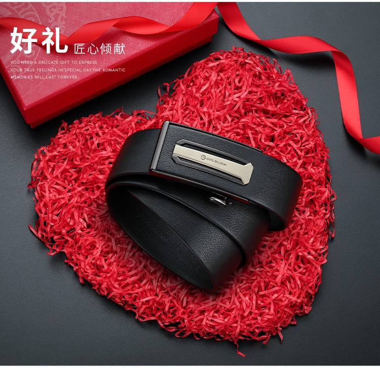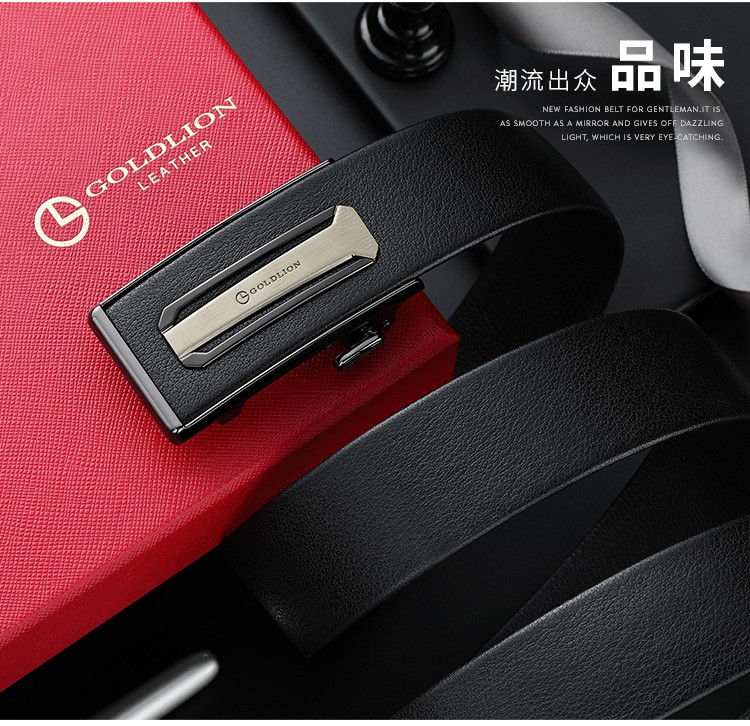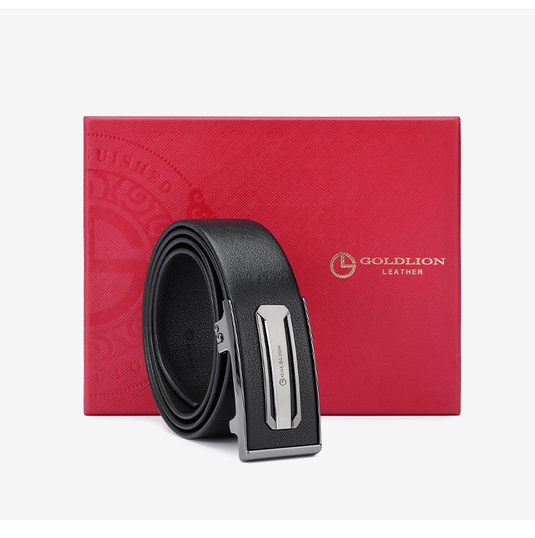 金利来(Goldlion)男士皮带自动扣礼盒简约腰带 男款时尚头层牛皮内扣裤带 MPC81062-2191 110-120CM 礼物送男友