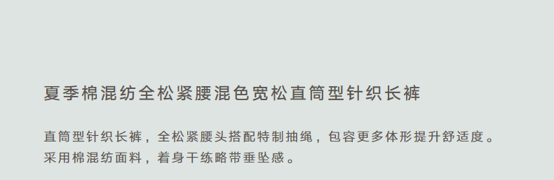 MODE COMMUTER | MC棉混纺亲肤抗皱针织全松紧腰宽松直筒针织长裤