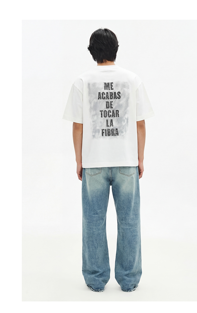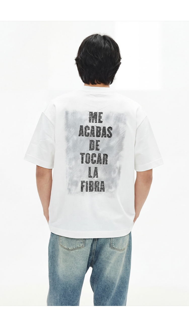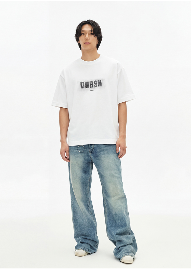 DRONKOO 圆领前DNRSH金属标后幅多排字母微阔短袖T恤