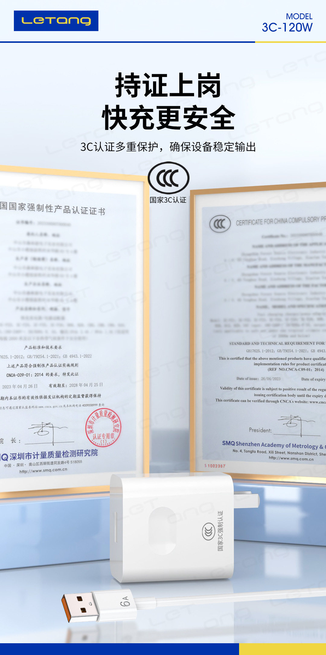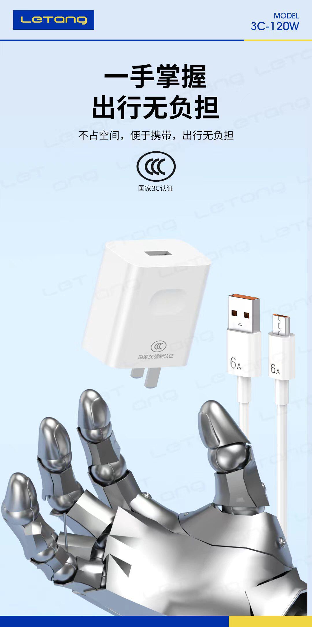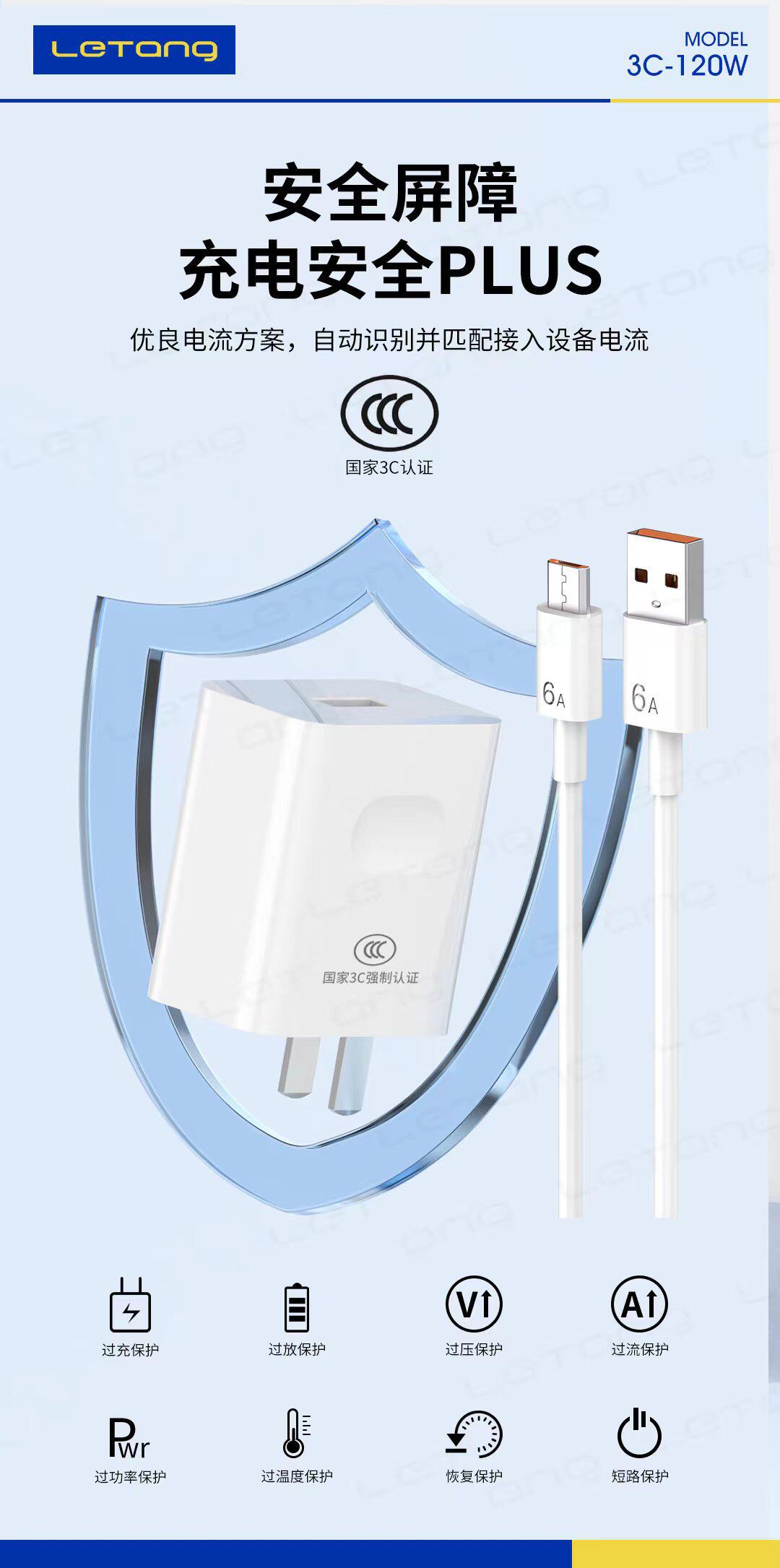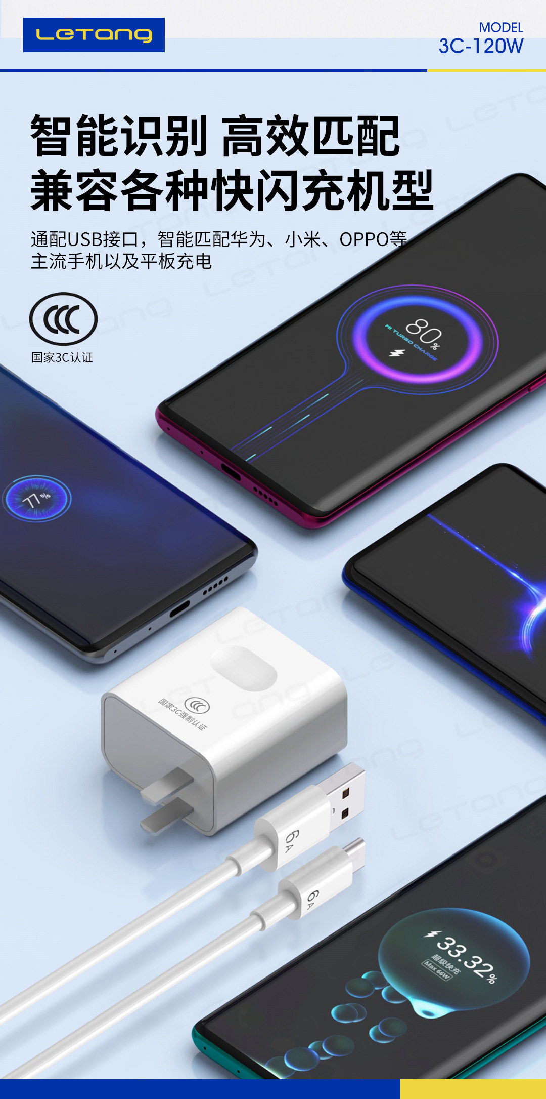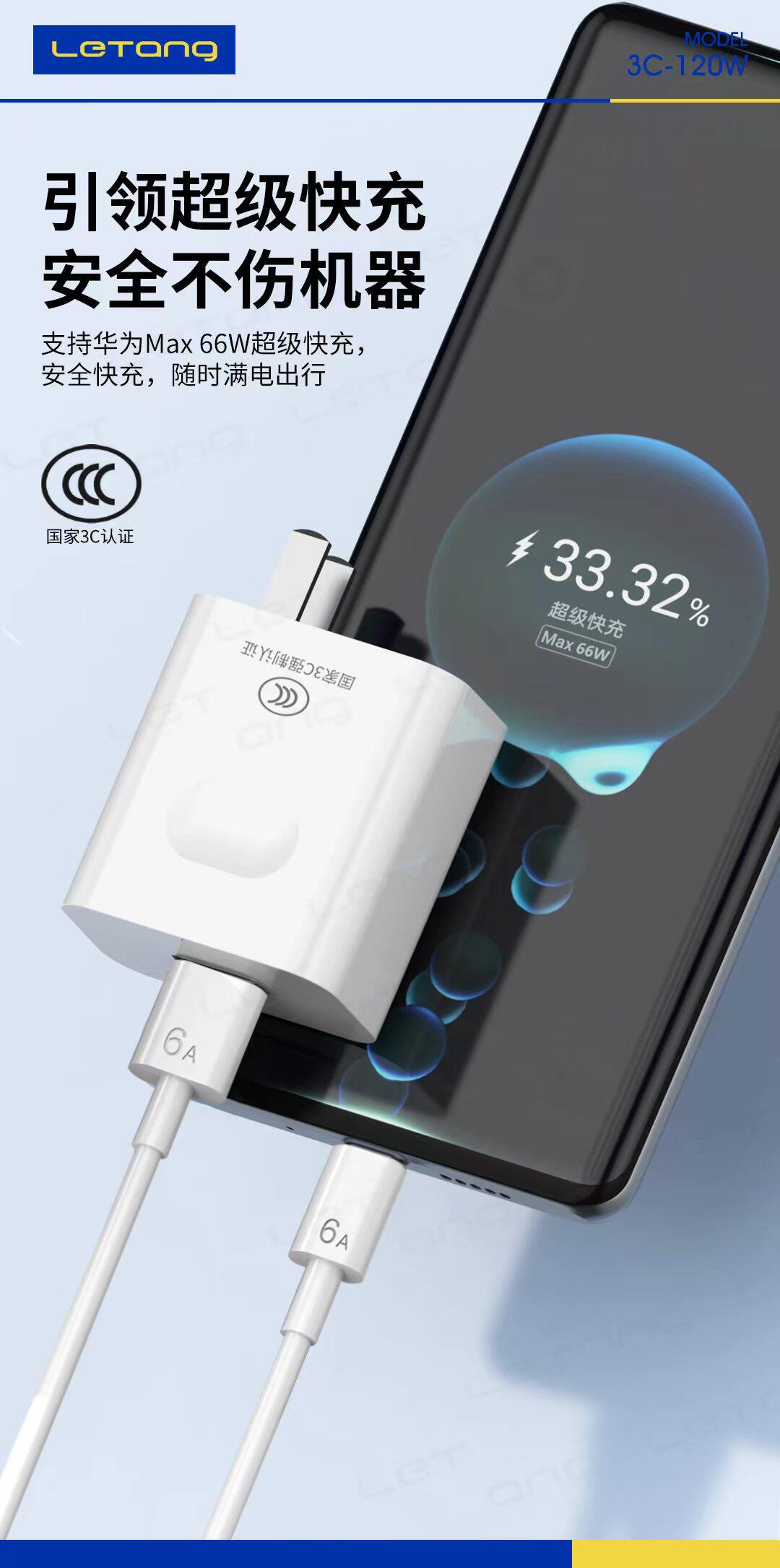 超级快充120W快充充电器适用安卓Type-c全兼容3C认证闪充头快充线