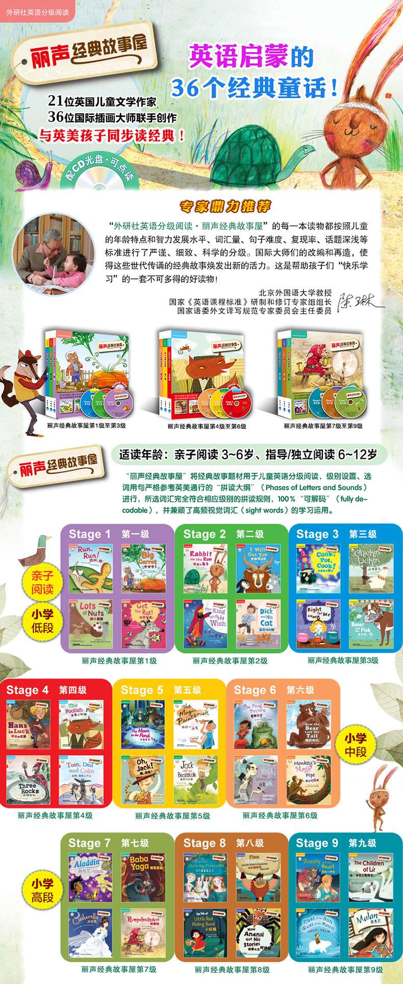 ☆ “外研社英语分级阅读.丽声经典故事屋” ☆ “书虫”小学衔接版,英语启蒙必读的36个经典童话故事! ☆ 21位英国儿童文学作家,36位国际插画大师联手创作,与欧美孩子同步读经典! ☆ 分级设置严格参考欧美通行的拼读大纲, 所选词汇100%“可解码”! ☆ 对家喻户晓的经典故事进行创意新编,提升孩子的国际视野和创意想象! 适读年龄:亲子阅读 3~6岁、指导/独立阅读 6~12岁