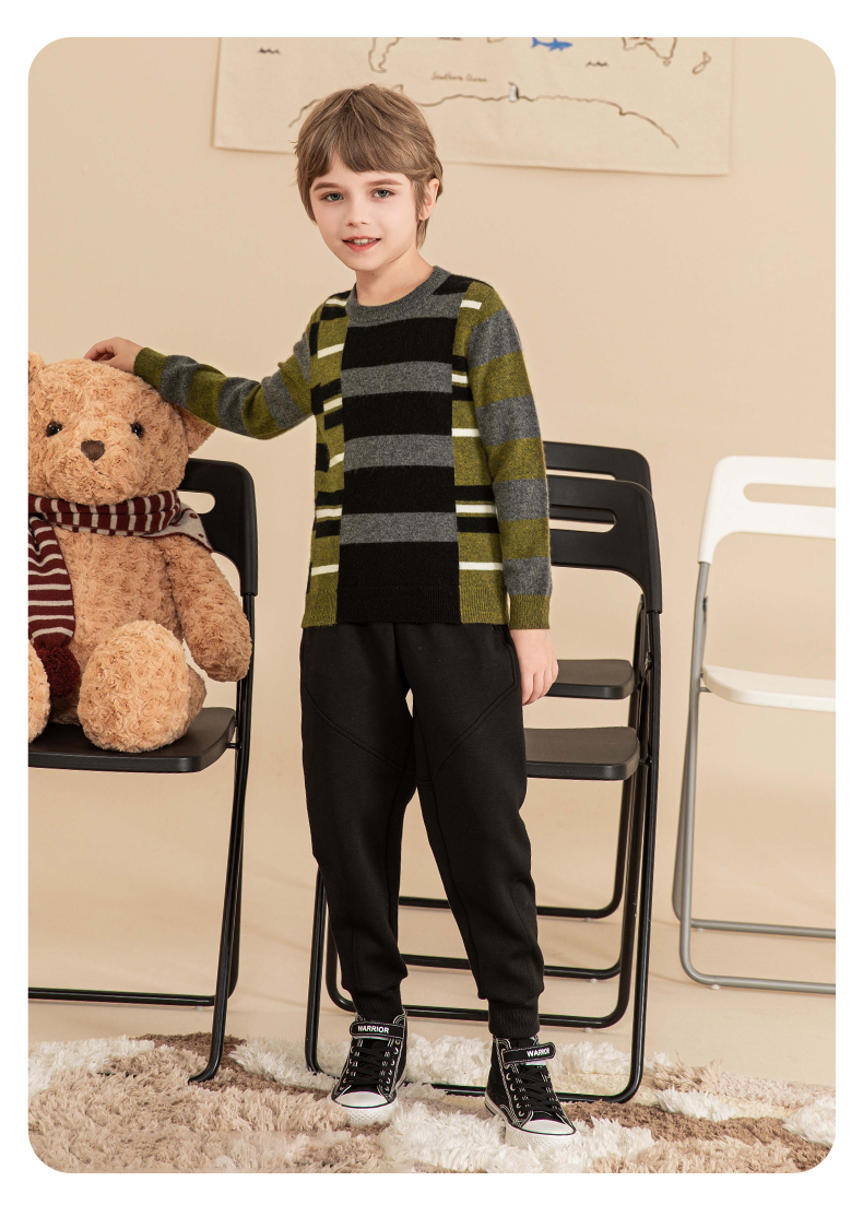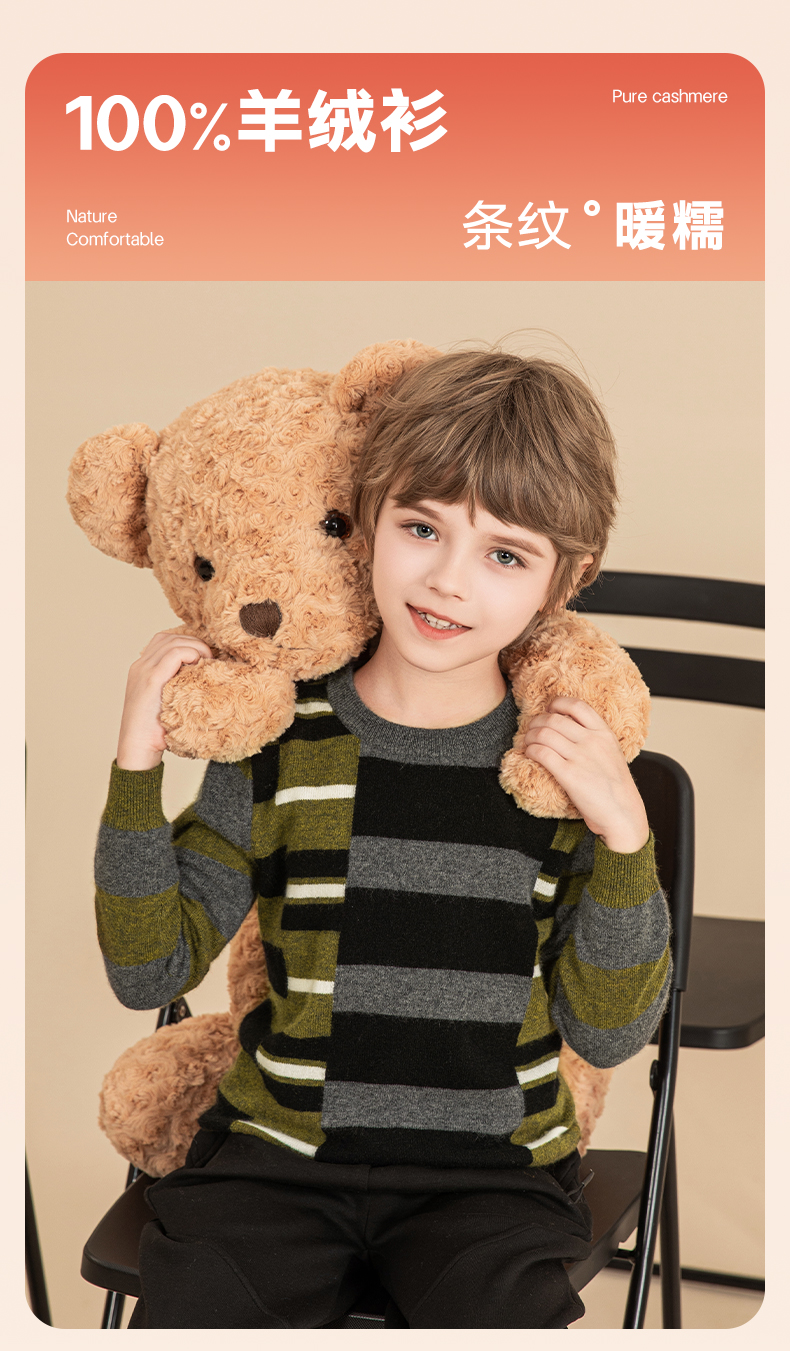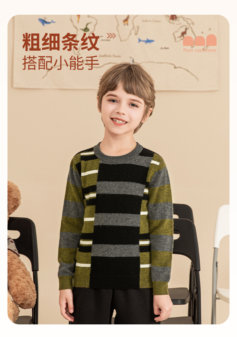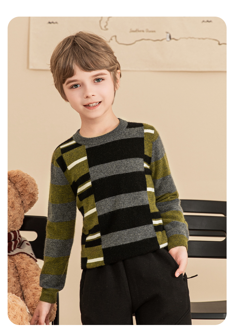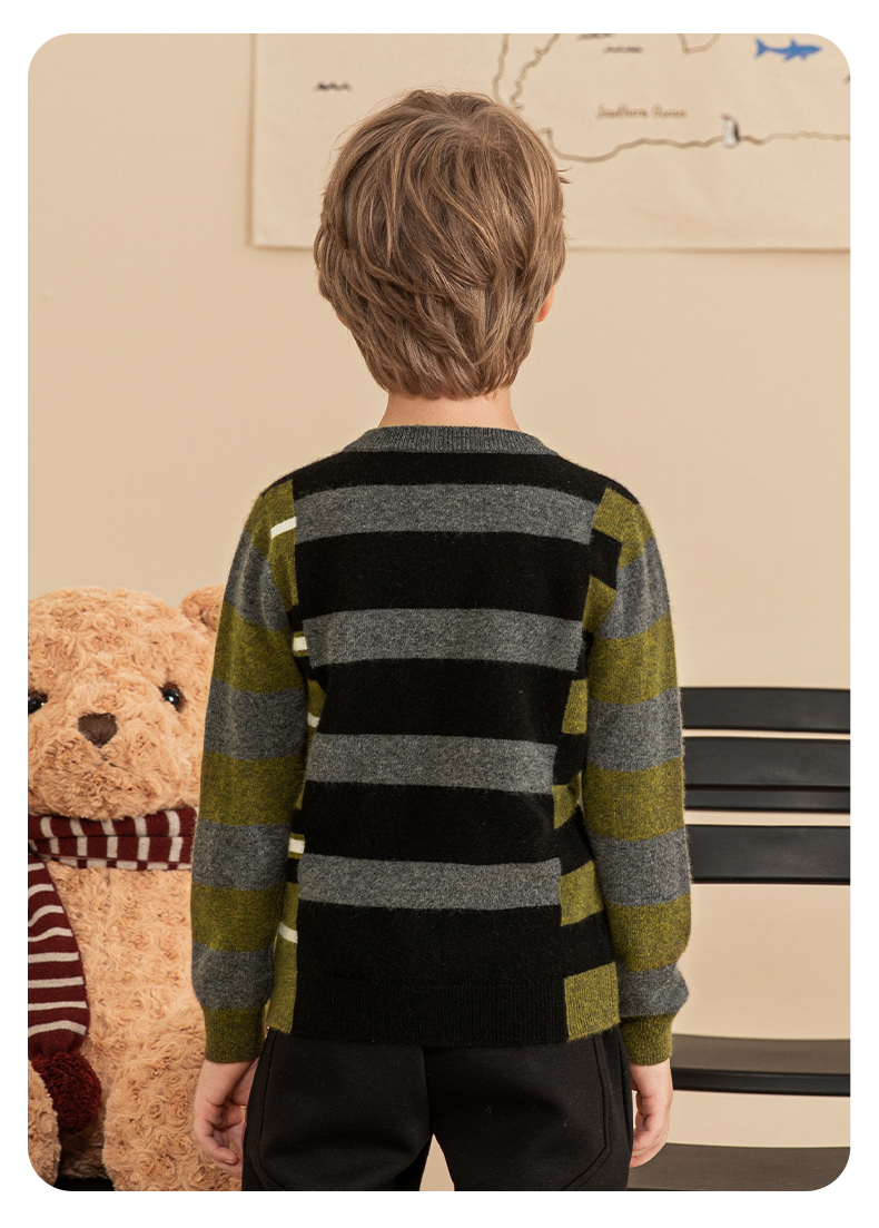 mettekids男童羊绒衫2023秋季新款条纹毛衣儿童休闲打底针织衫
