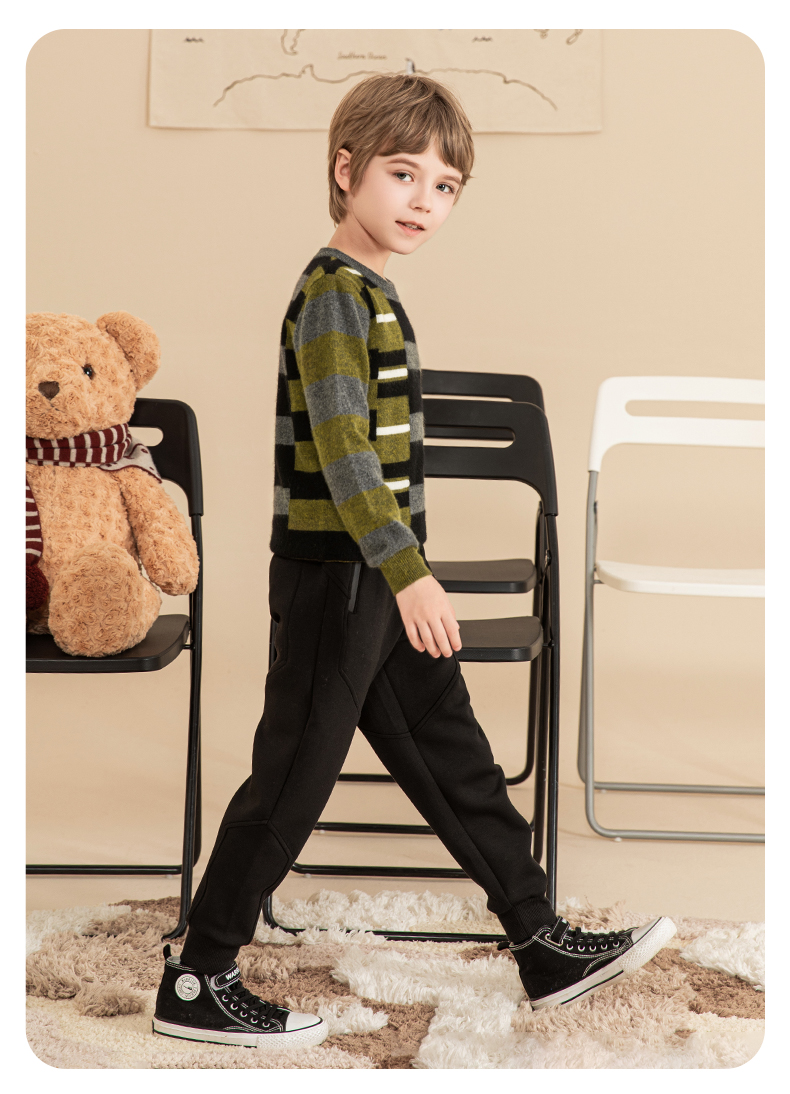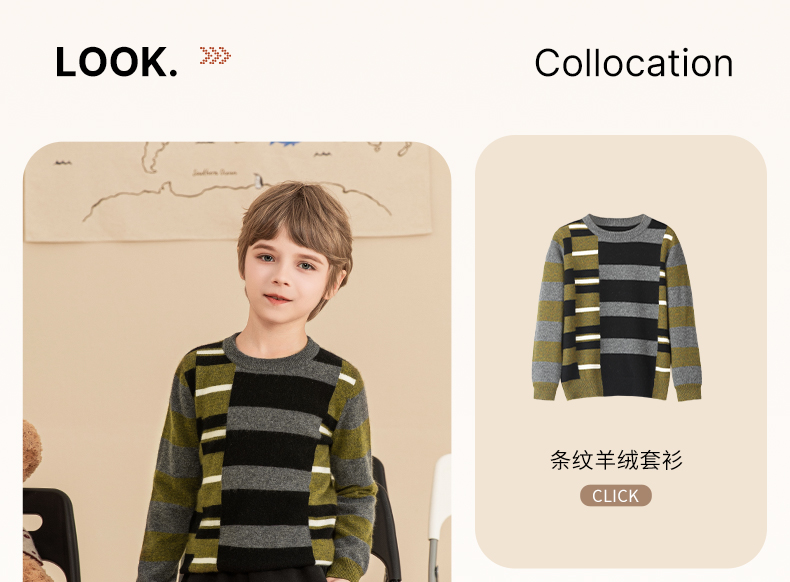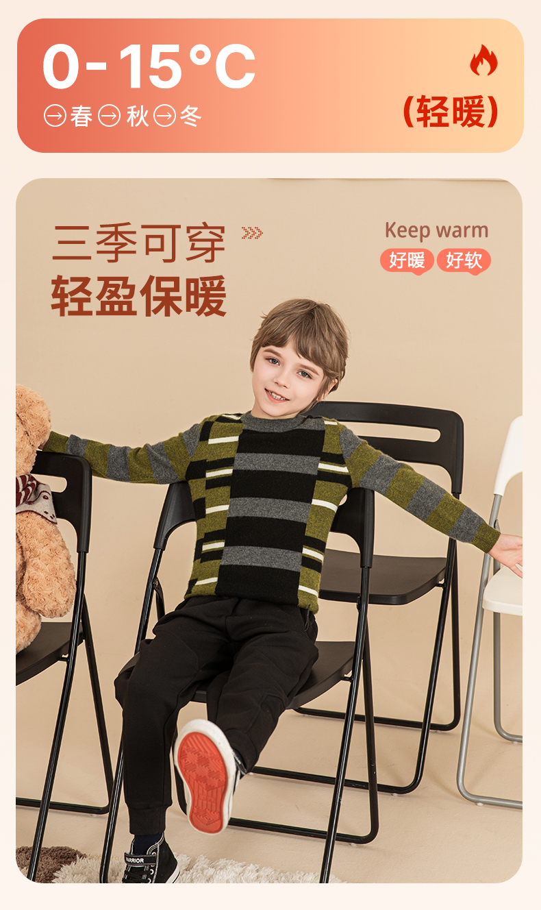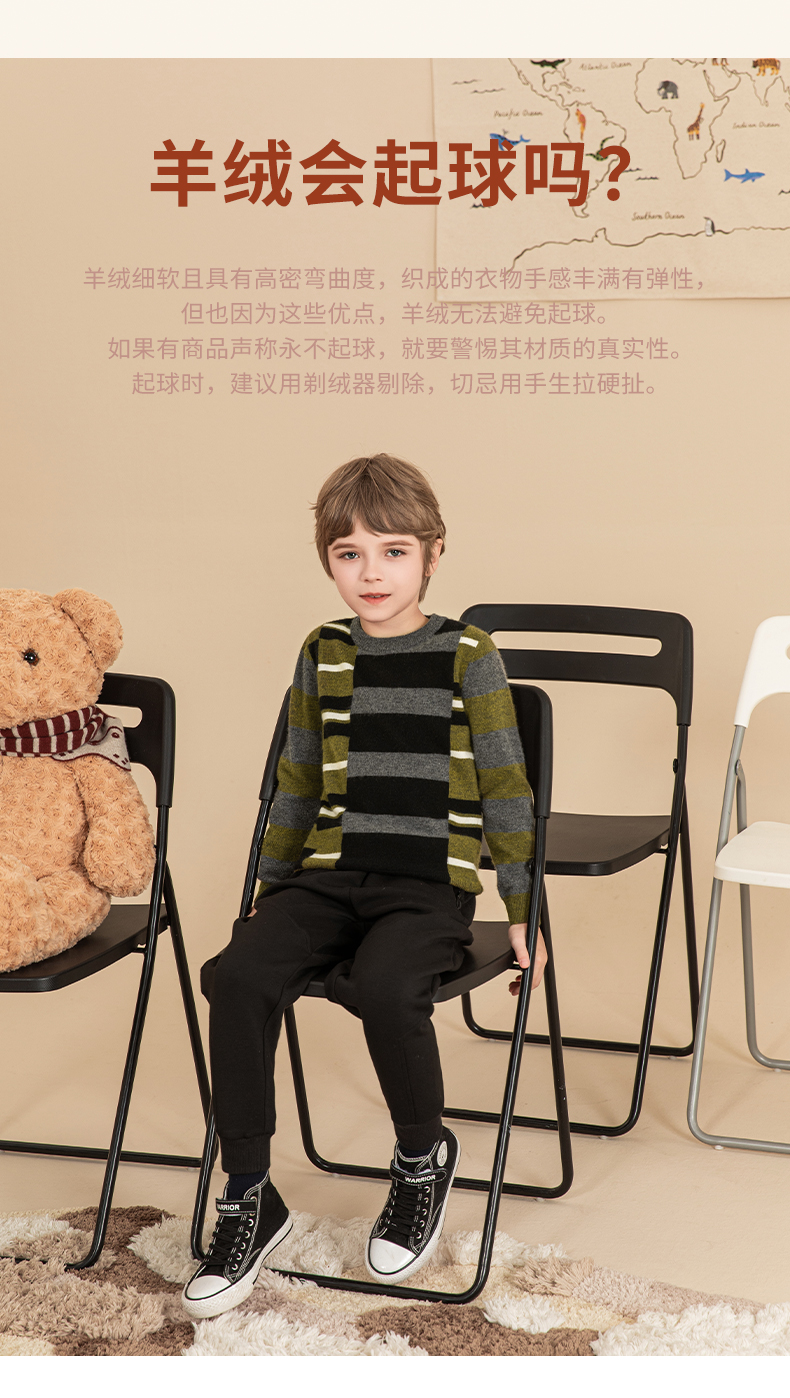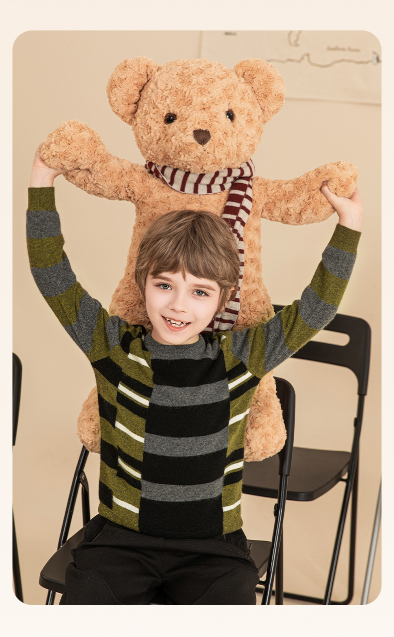 mettekids男童羊绒衫2023秋季新款条纹毛衣儿童休闲打底针织衫