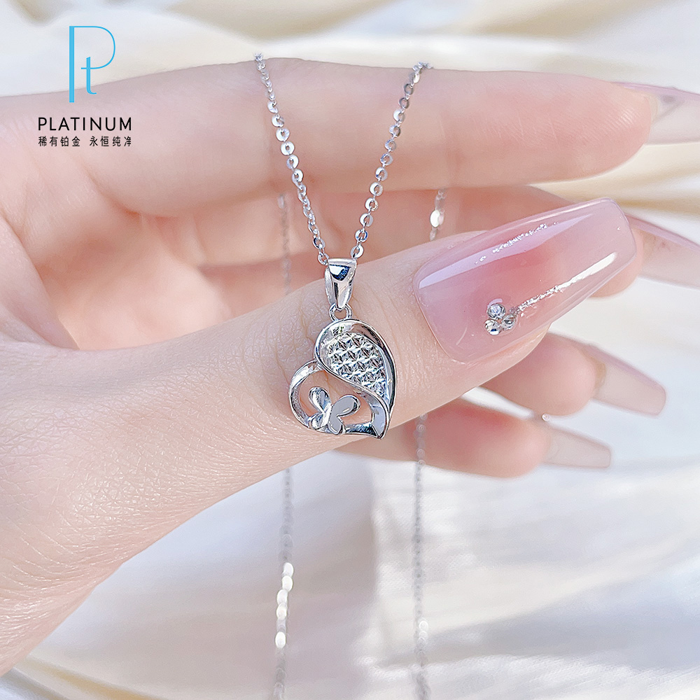 【限时8.8折】PT950 #怦然心动 【国际铂金协会 精品】铂金镂空CNC蝴蝶爱心心形吊坠(不含链)(ACPTDZ00059)预售产品下单后不退款不退货不换货不补差价)