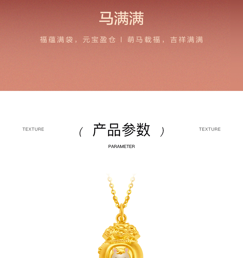 「美好金-马年贺岁金」马满满生肖马黄金吊坠 足金5D硬金本命年