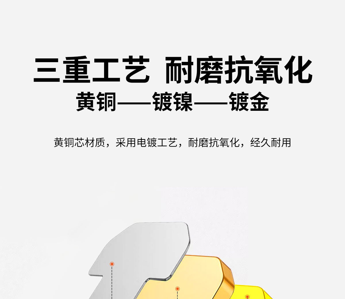 爆款★热销@工程包检【H65黄铜+FU镀金+镀镍大三叉芯片】加厚镀金层过FLUKE福禄克测试水晶头5类RJ45千兆网络接头电脑网线POE供电 监控工程传输千兆高速传输数据中心机房网络布线一站式采购