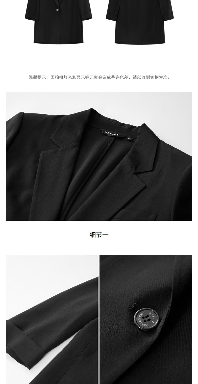 NEELLY纳俪商场同款夏季新款气质感西装外套女通勤休闲七分袖上衣N25044W04564