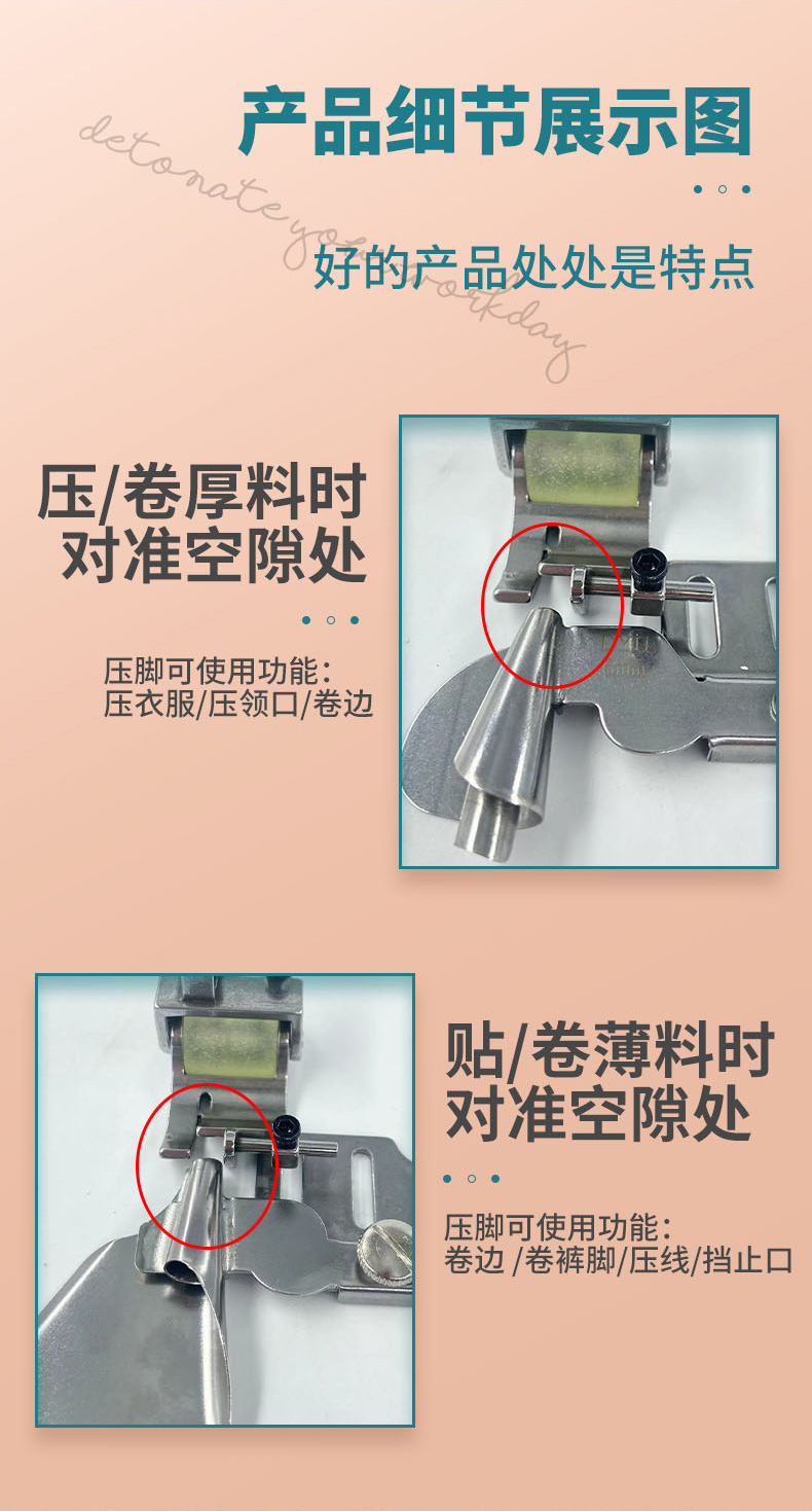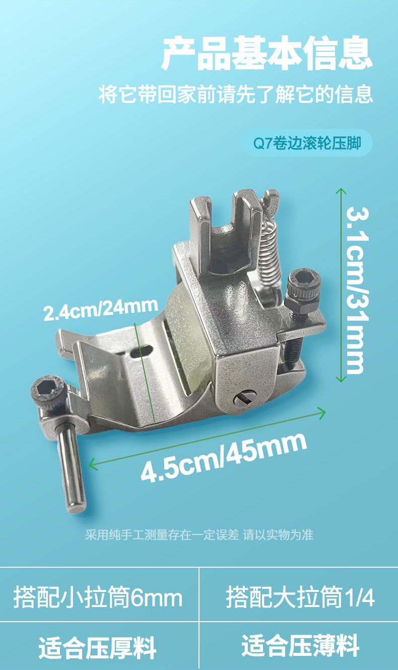 新款Q7滚轮卷边压脚车领条卷裤脚压线挡边防卷防赶布平车压脚