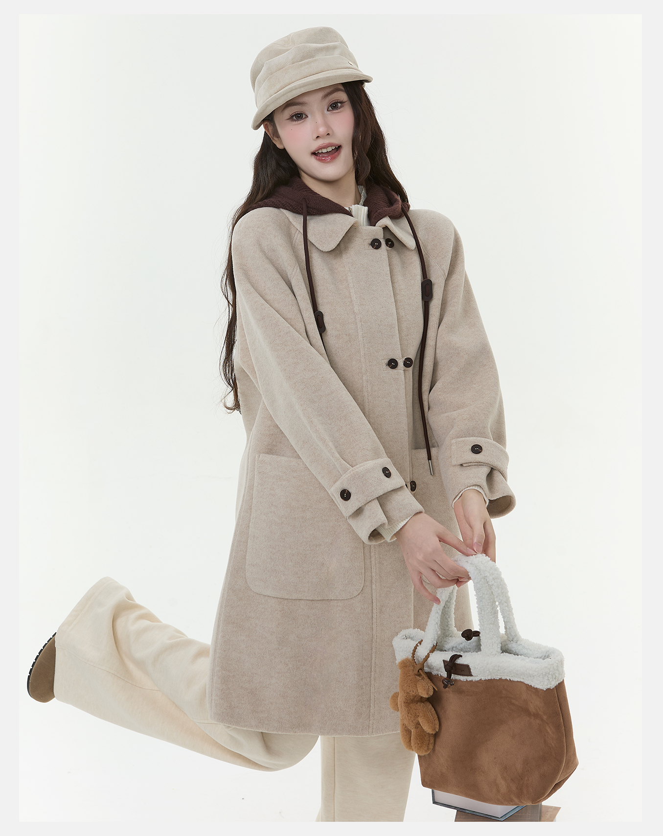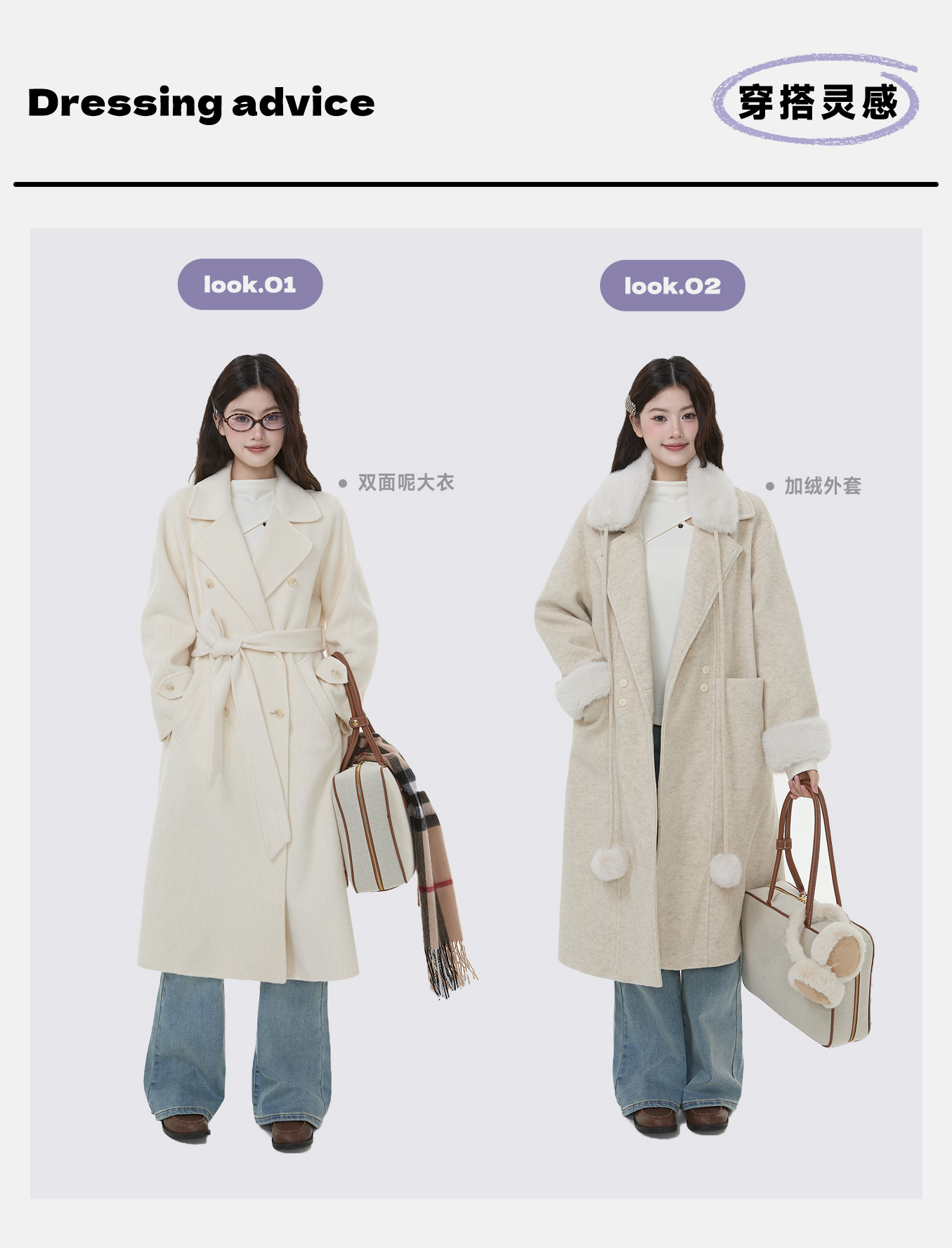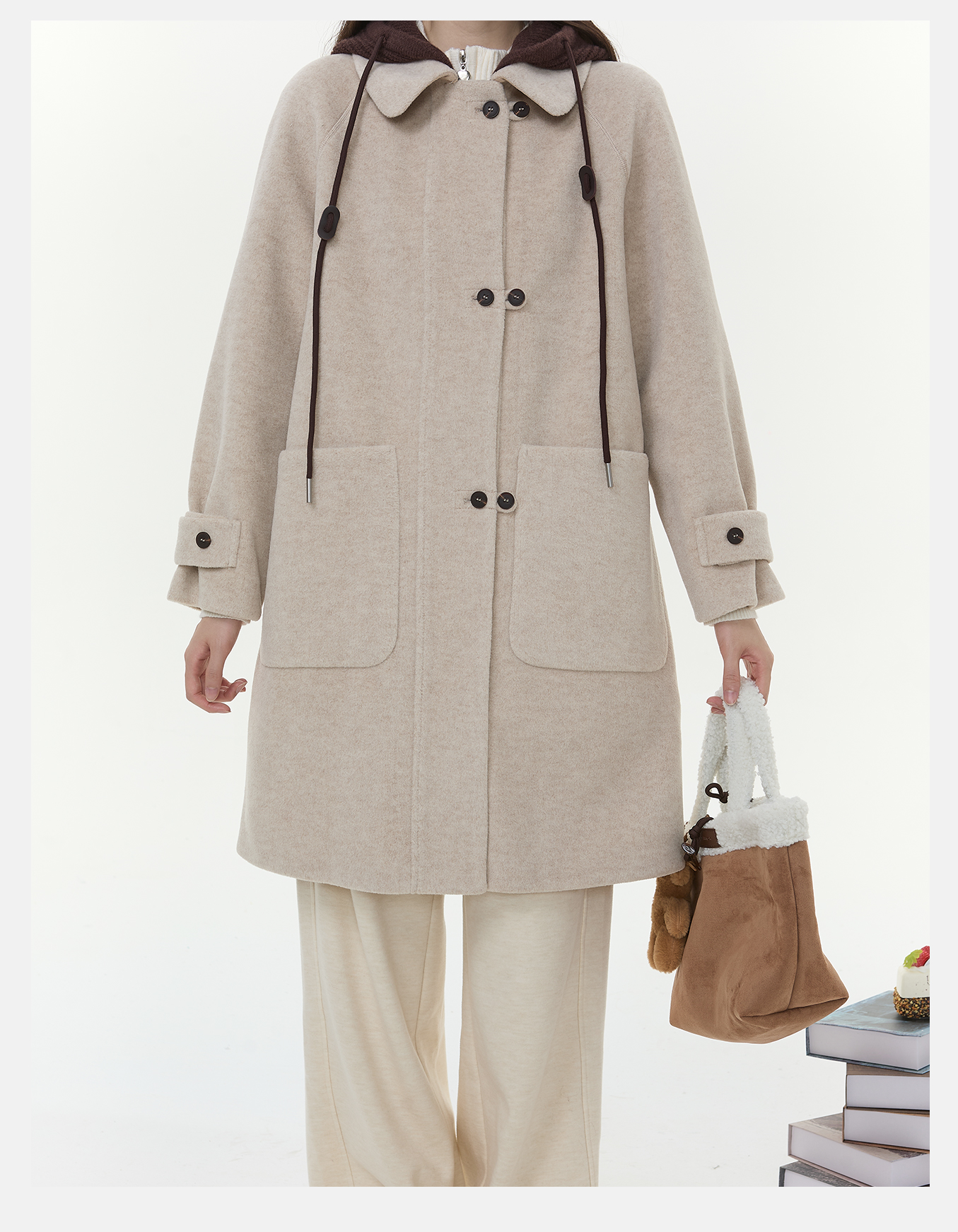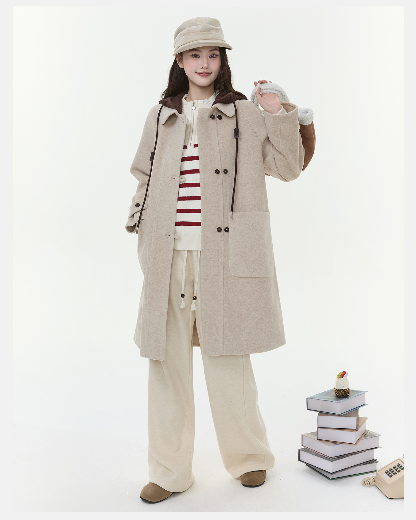P&X设计师女装2025冬季大衣休闲针织中长款外套825413246 卡其