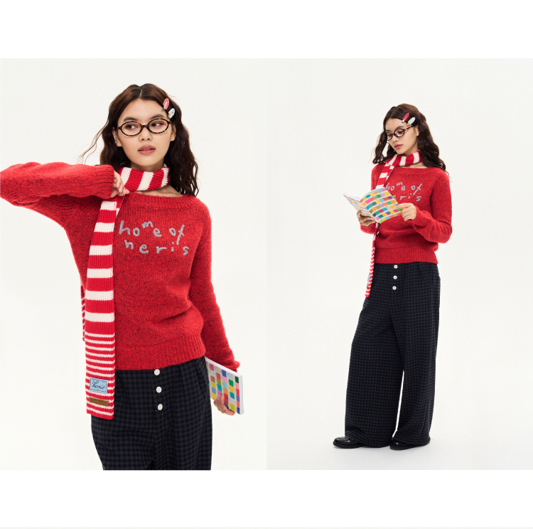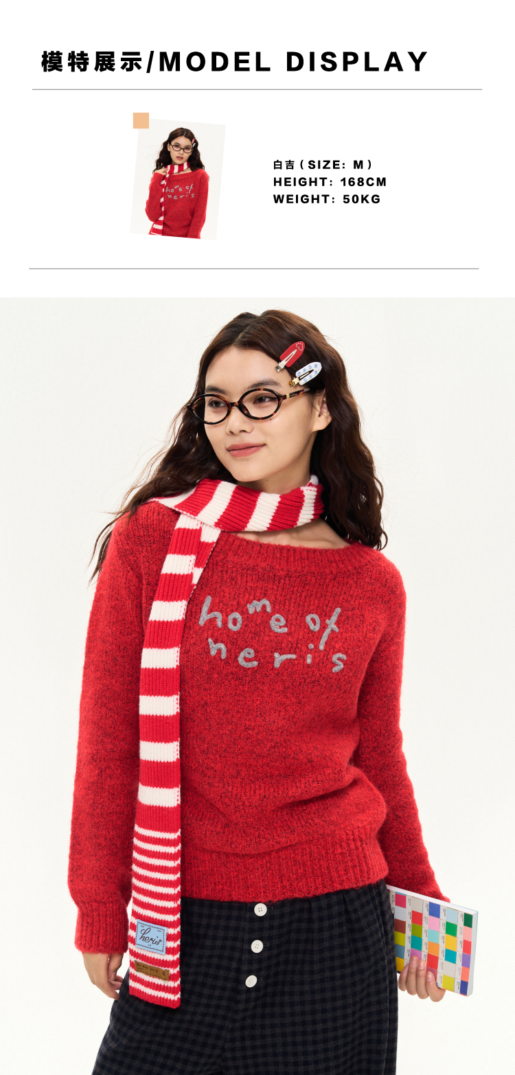 heris/H44106/圣诞氛围红色窄围巾