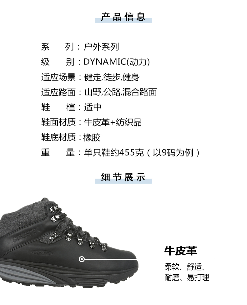 MBT足健康鞋 男厚底中帮户外徒步鞋足弓支撑 GTX防水MTAPLINE