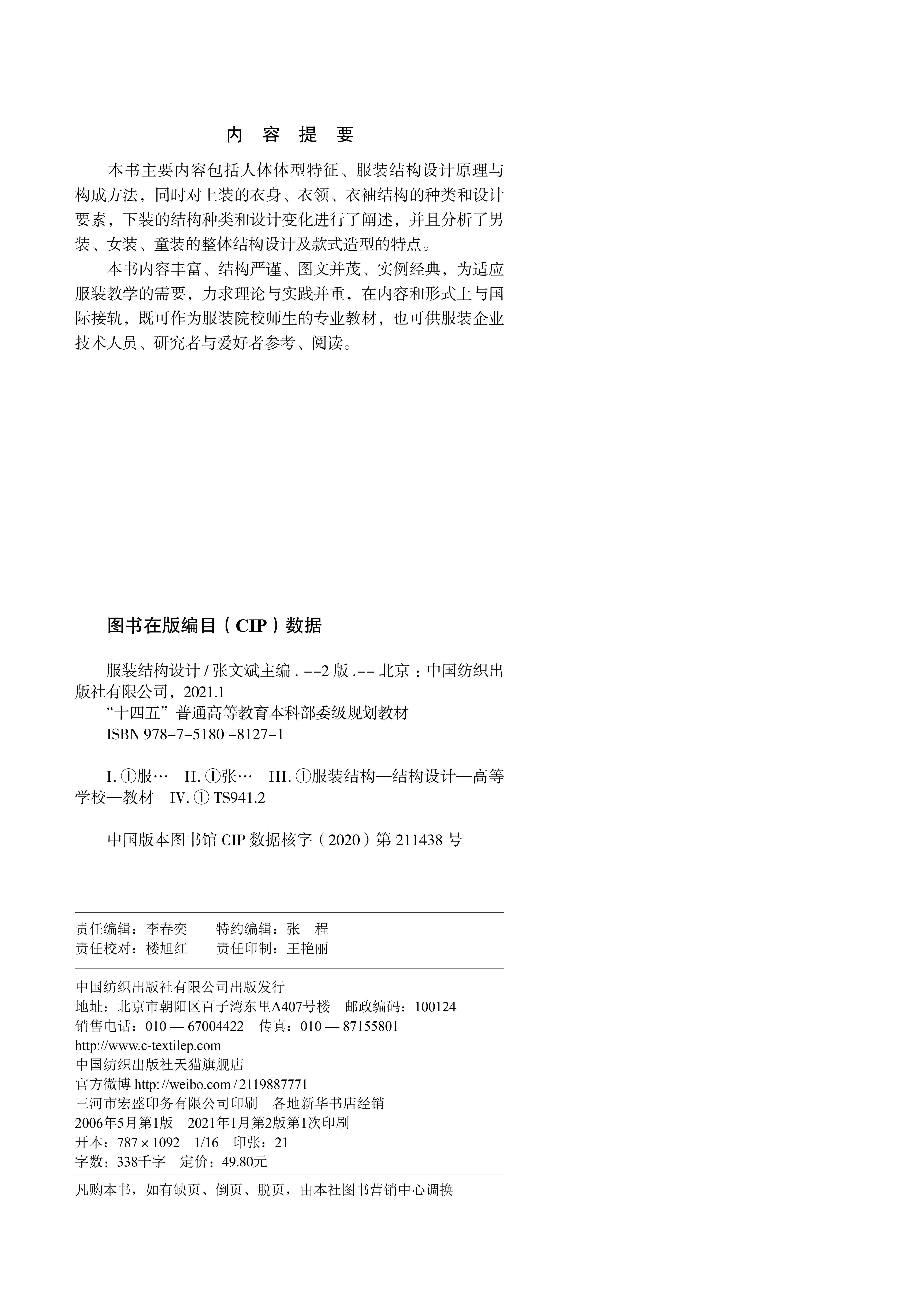 2021新书 服装结构设计 第2版二版 张文斌 十四五本科规划教材书籍 大学服装艺术专业教材书籍 服装款式结构造型设计教材书籍