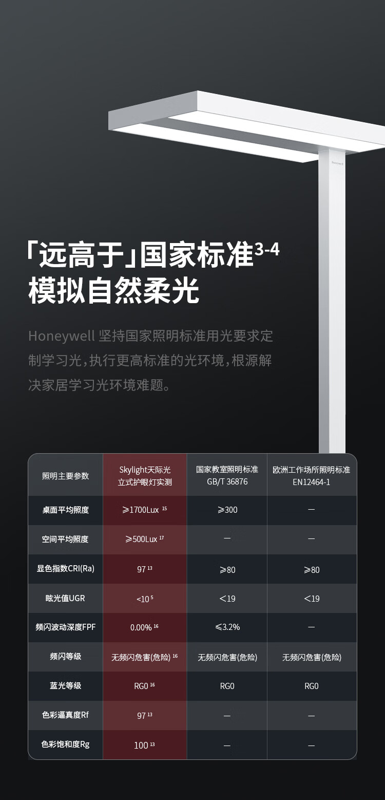 霍尼韦尔(Honeywell)立式护眼台灯学习灯LED全光谱类太阳光落地大路灯儿童卧室书房_【店长推荐】天际光HWL-02Max