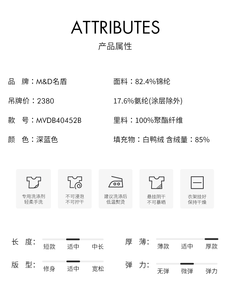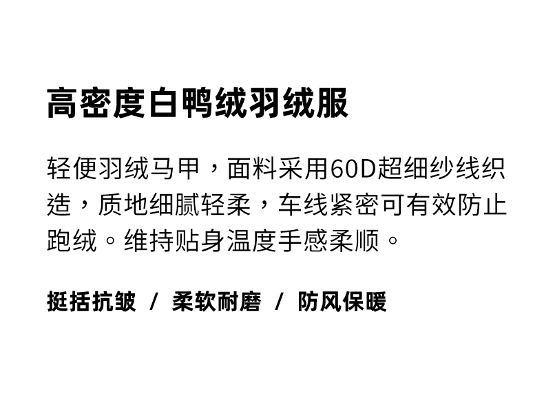 | 领型: 无帽立领 | 填充物: 白鸭绒 |
