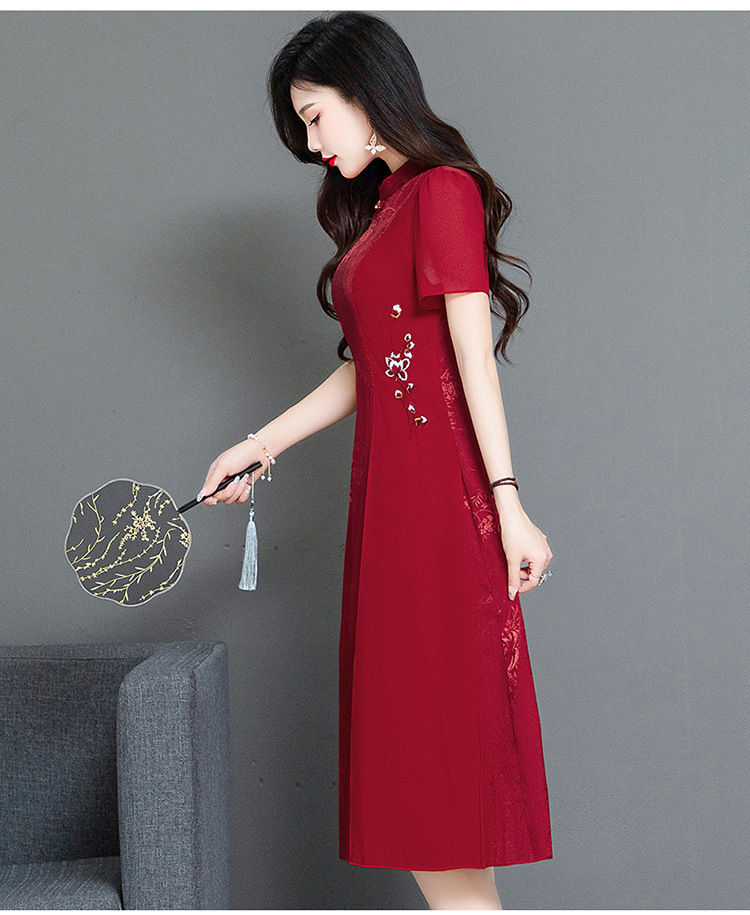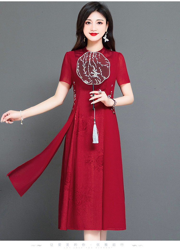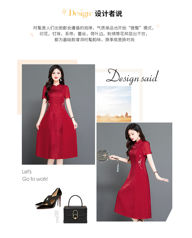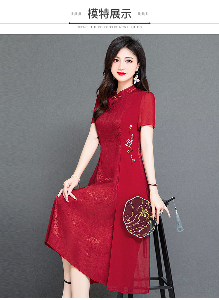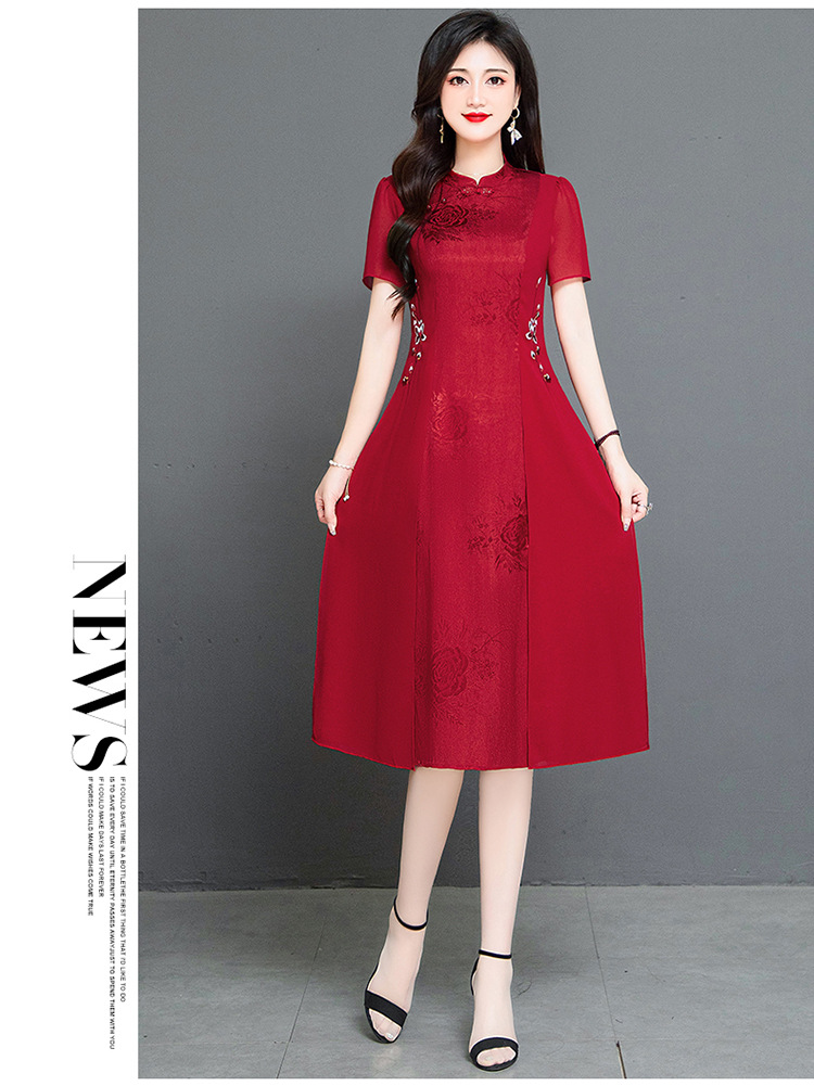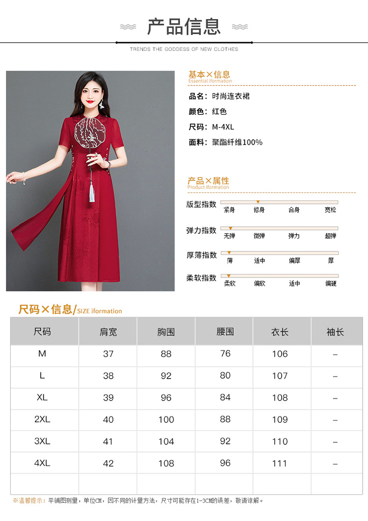时尚气质,红色中长款连衣裙QYM-TYH-239338-Y