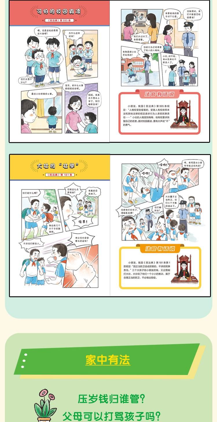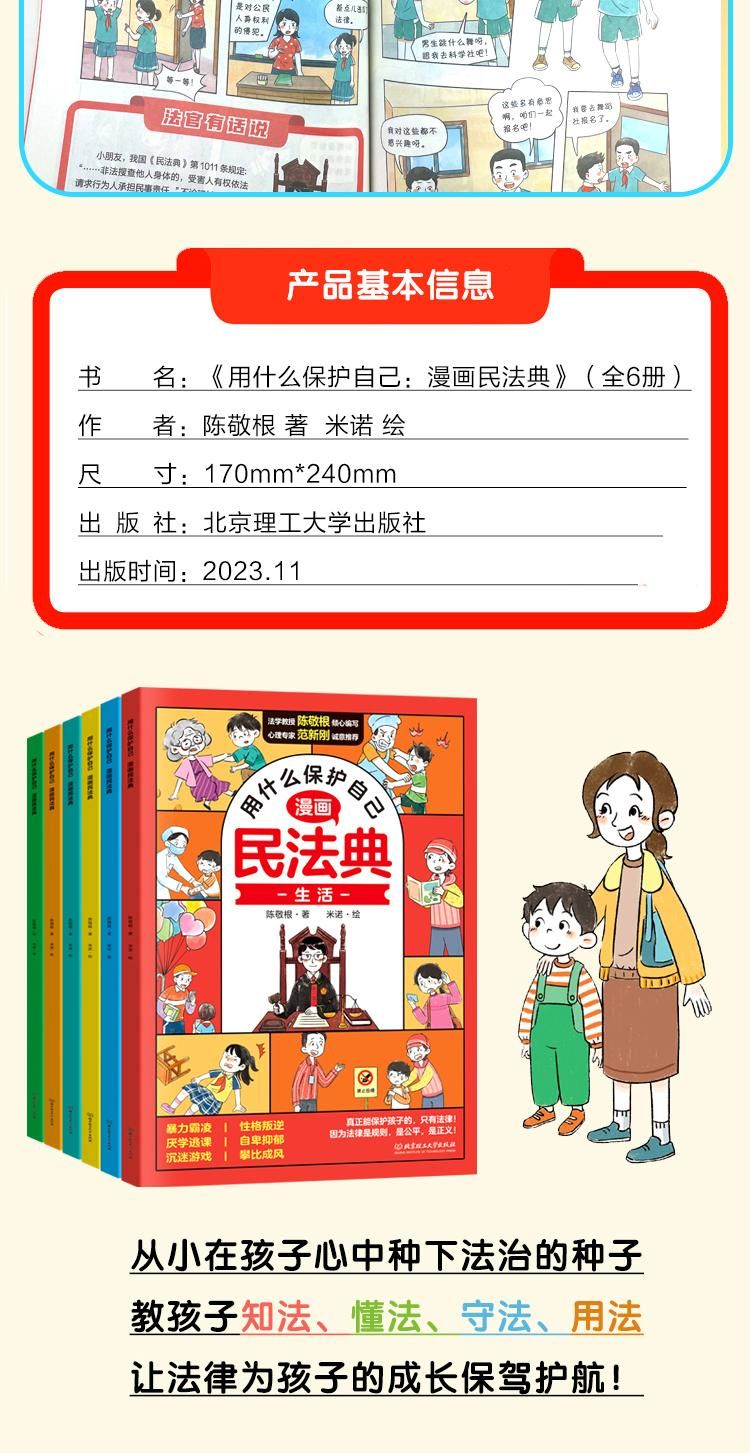 漫画版民法典全6册 让孩子学法懂法 学会如何保护自己 法律启蒙书