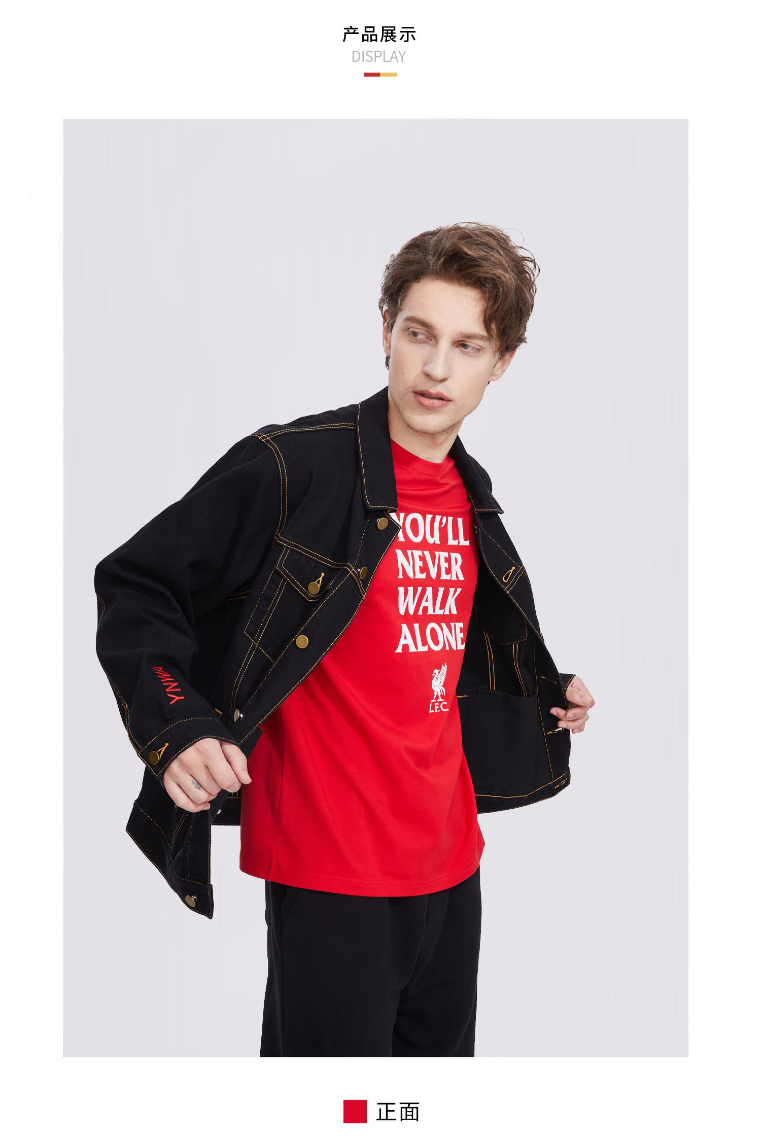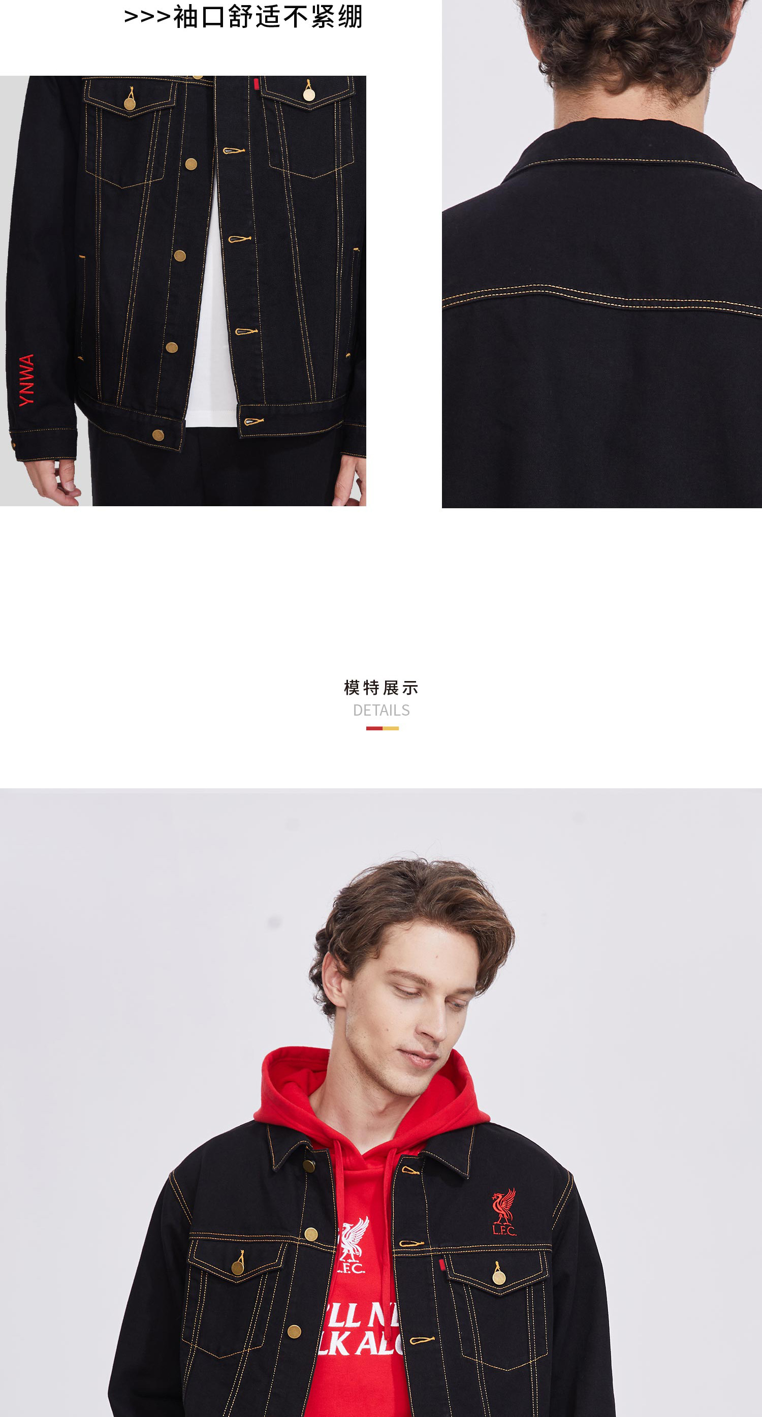 利物浦俱乐部官方商品|简约黑色刺绣牛仔外套时尚百搭球迷必备