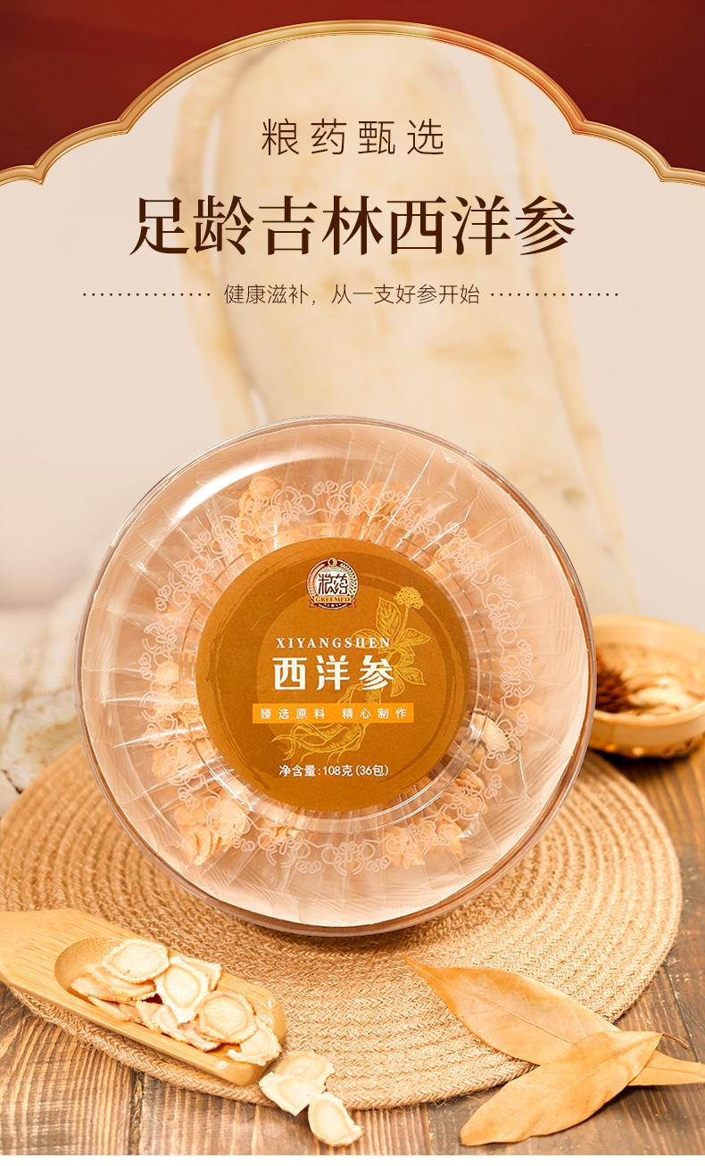 【粮药LY】西洋参 足龄吉林西洋参老参温补体质圆盒装(3g*36包)独立小包装