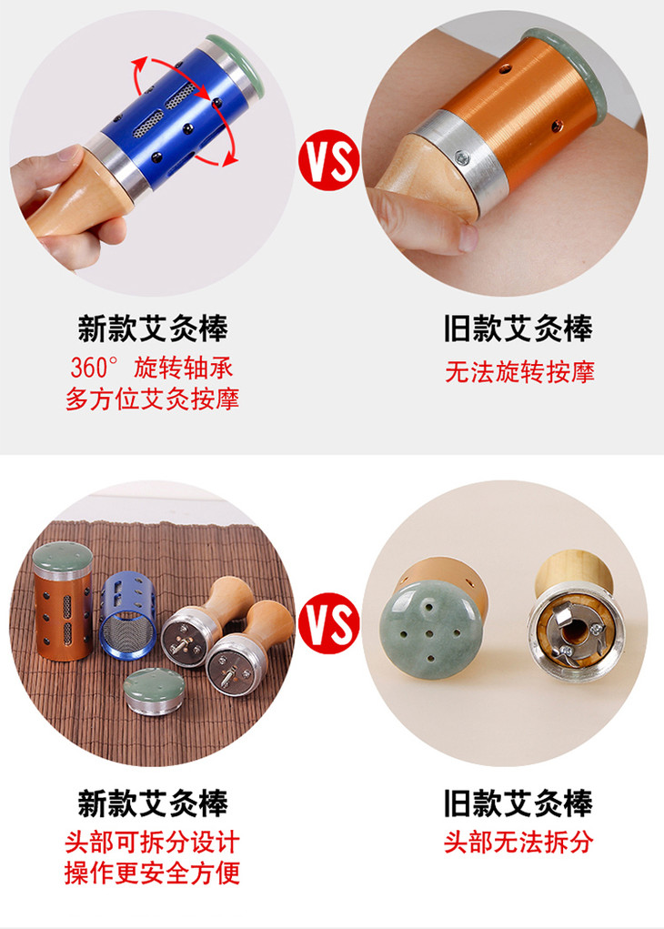 玉石艾灸棒手握滚动式按摩棒脸部灸面部通用温灸棒经络