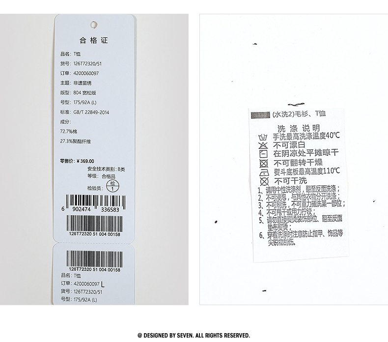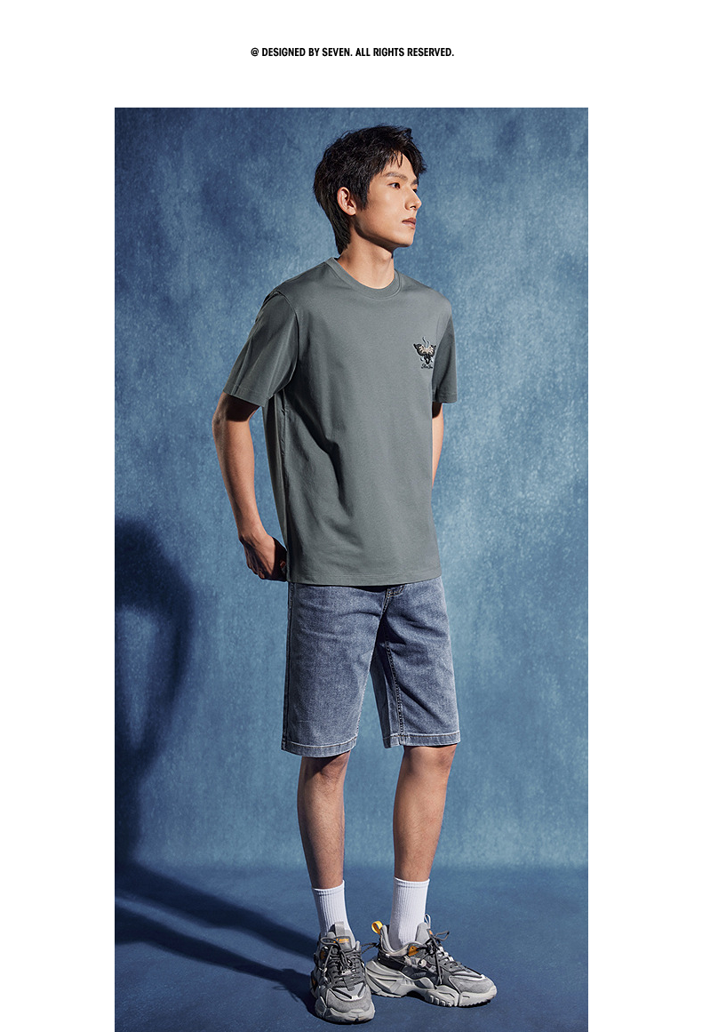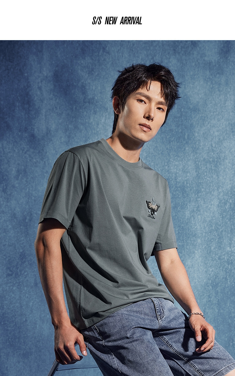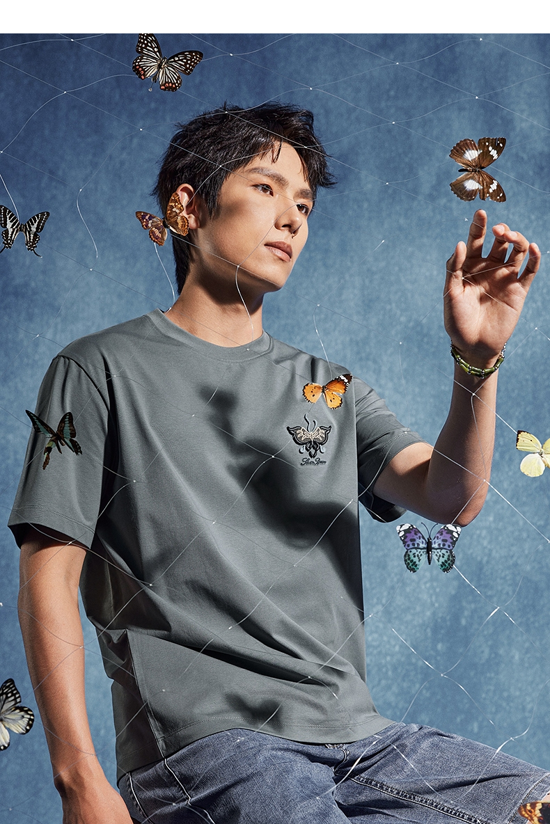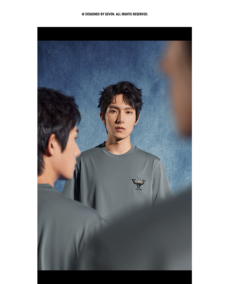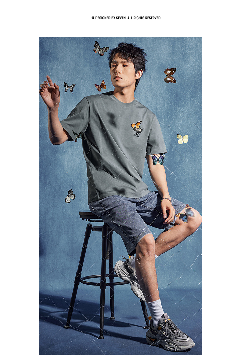 【非遗苗绣蝴蝶妈妈系列】柒牌短袖T恤男夏季新款时尚潮流体恤衫 126T72320
