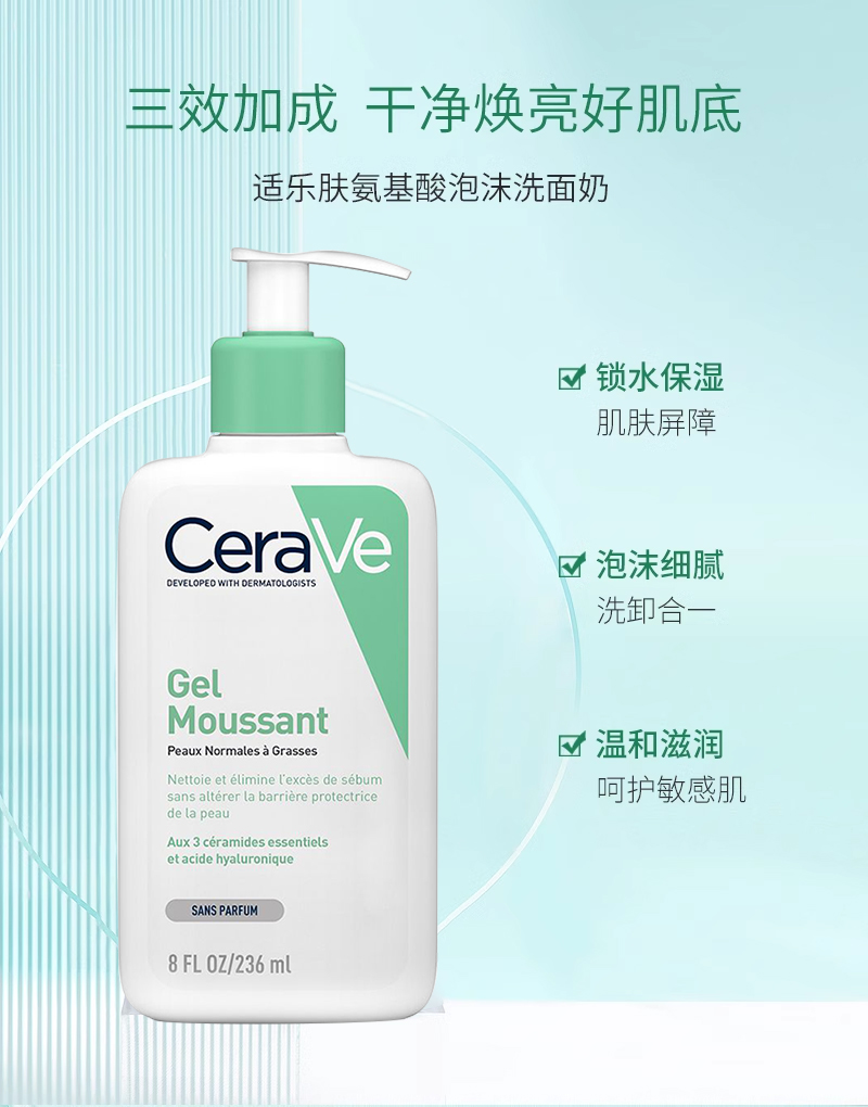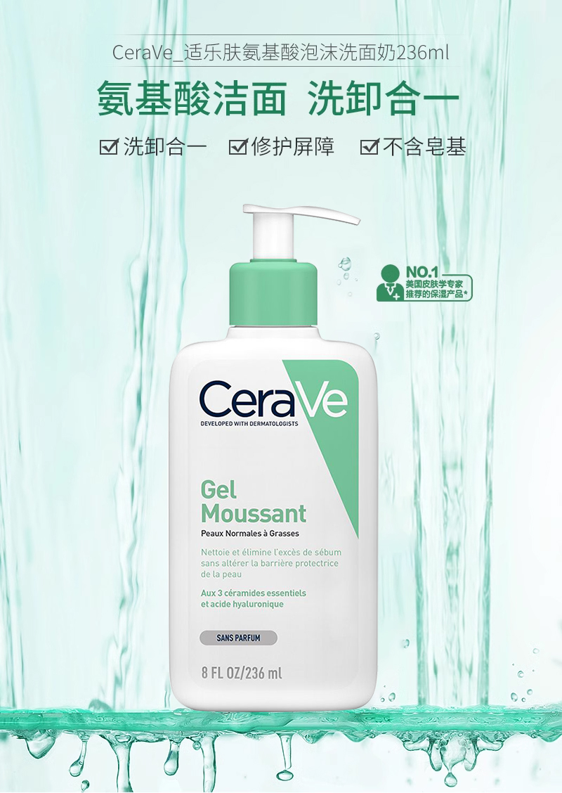 保税|CeraVe适乐肤补水保湿氨基酸泡沫洁面 适乐肤清洁温和洗面奶236ml