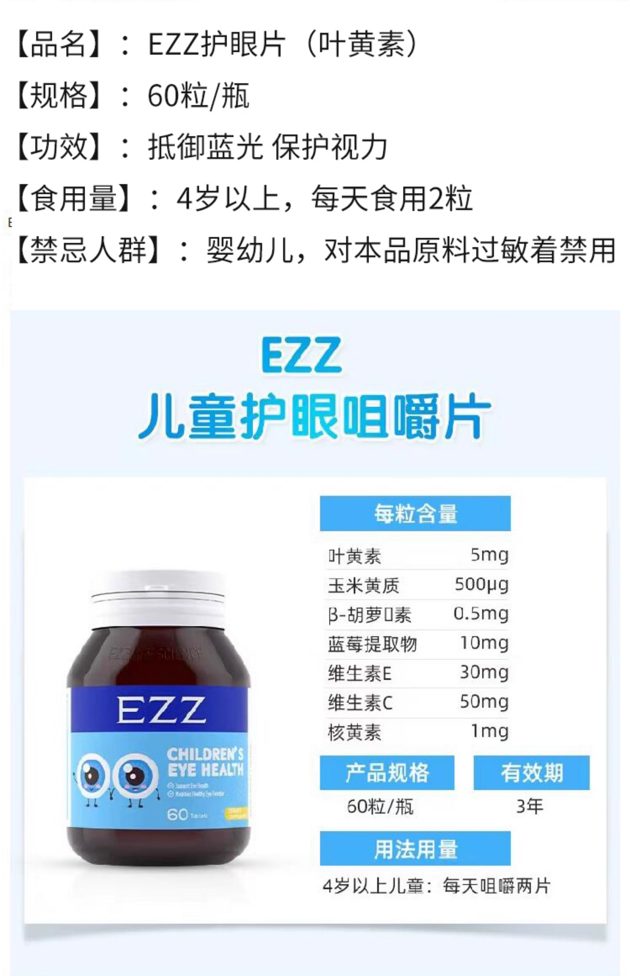 EZZ 儿童叶黄素护眼片 60粒