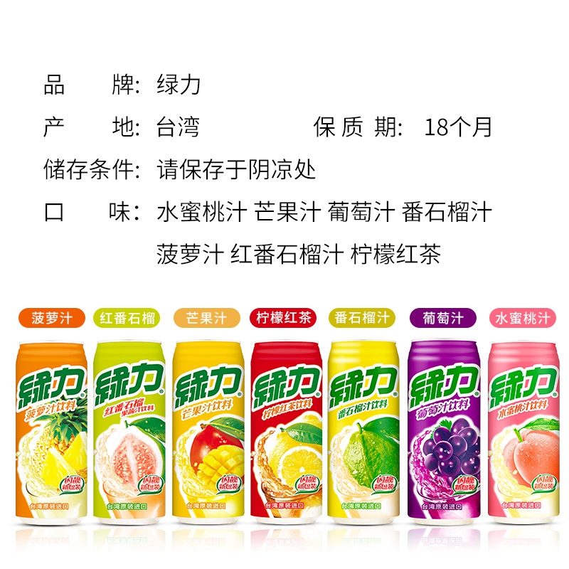 中国台湾绿力系列果味饮料多种果味醇厚口感 野餐聚餐必备 020577/025272/025273/025274/025275/025276