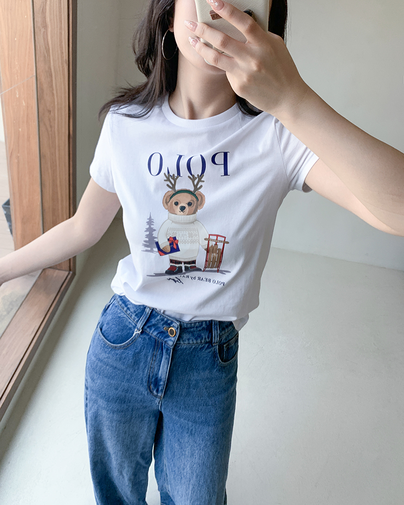 单品包邮现货 THS-特 无补 polo RL家女士 马球 小熊印花T恤 6色 BH2503