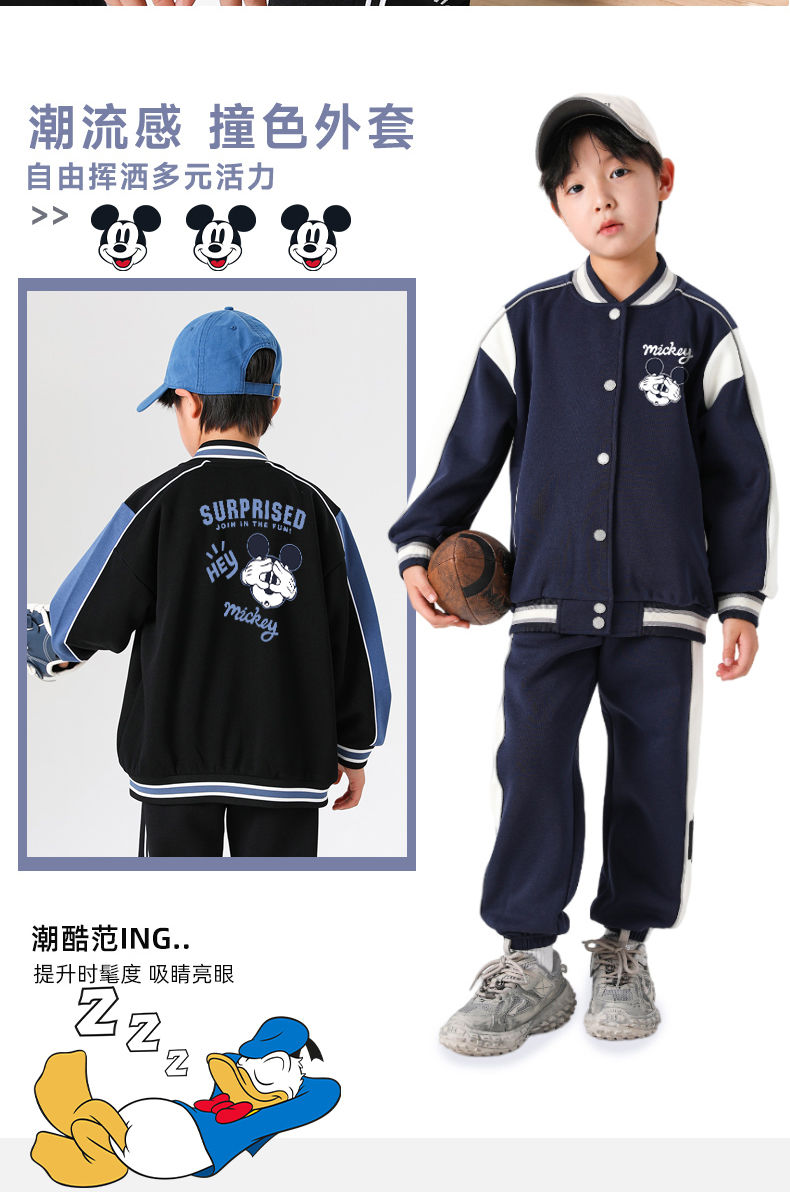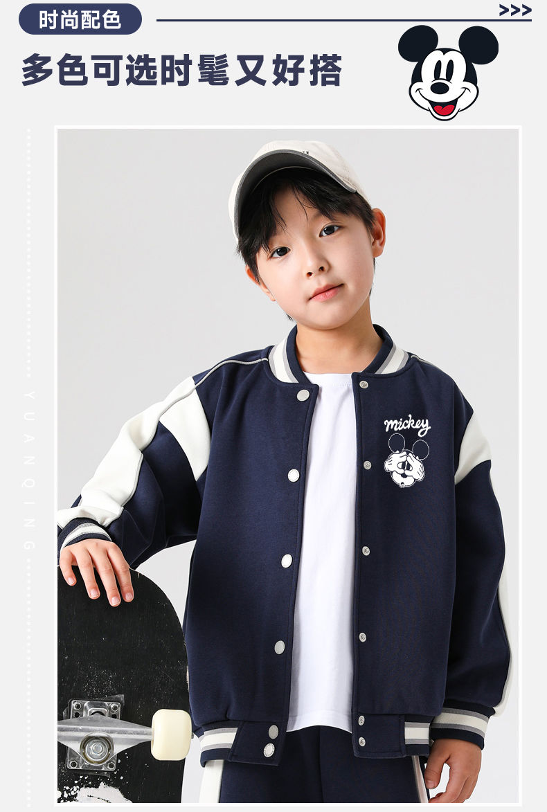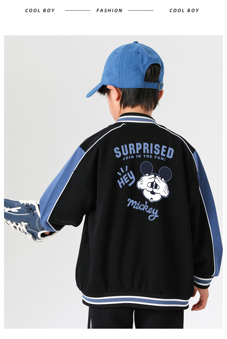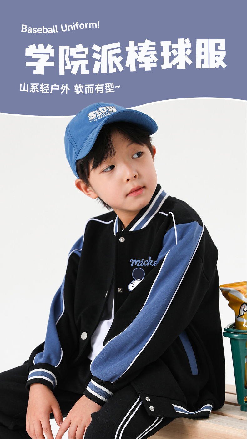 迪士尼男童外套秋季2024新款儿童棒球服春秋男大童运动上衣洋气潮