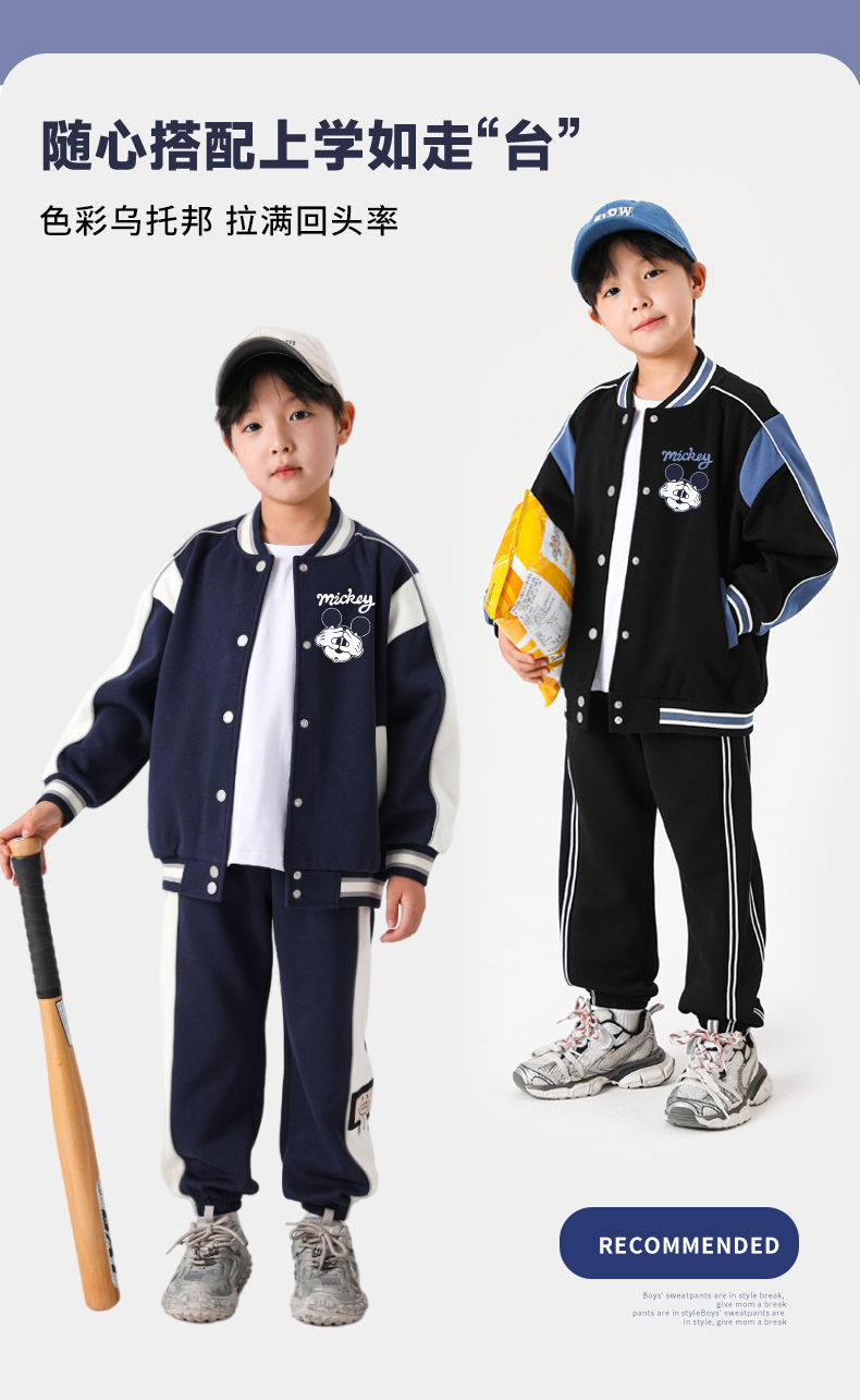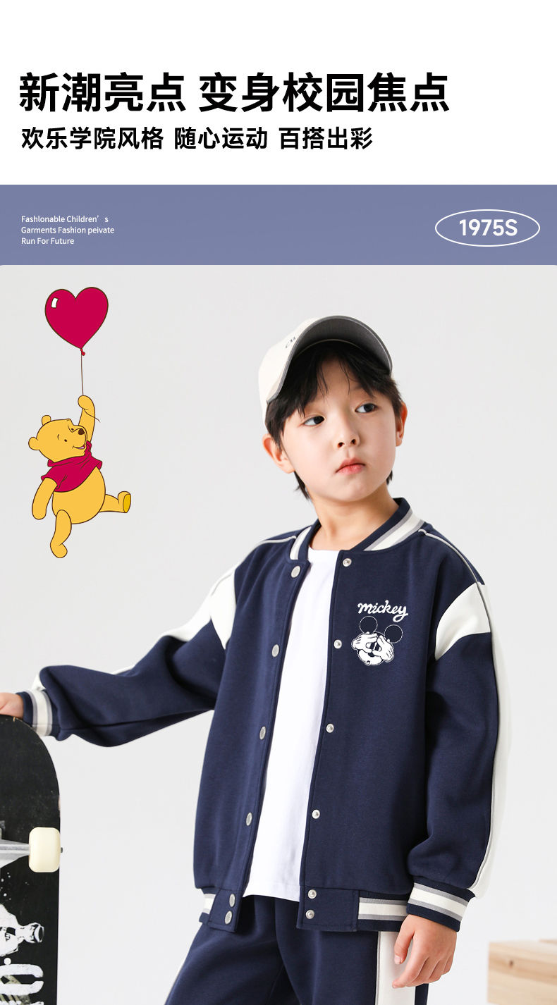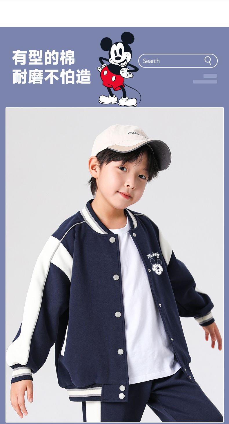 迪士尼男童外套秋季2024新款儿童棒球服春秋男大童运动上衣洋气潮