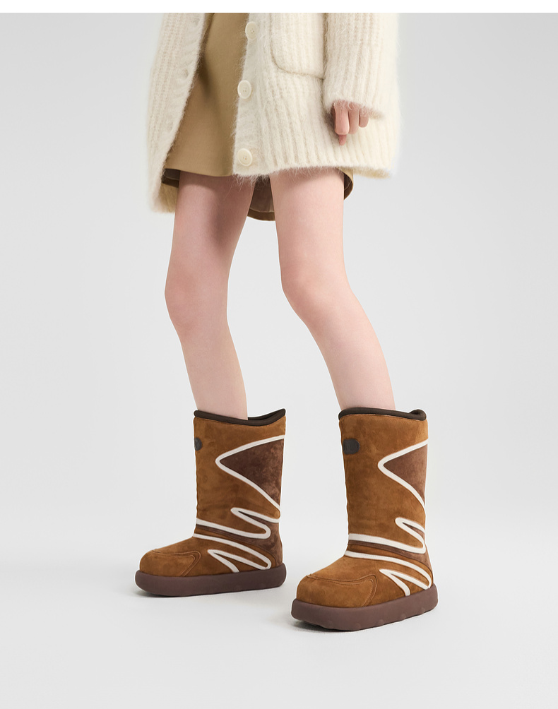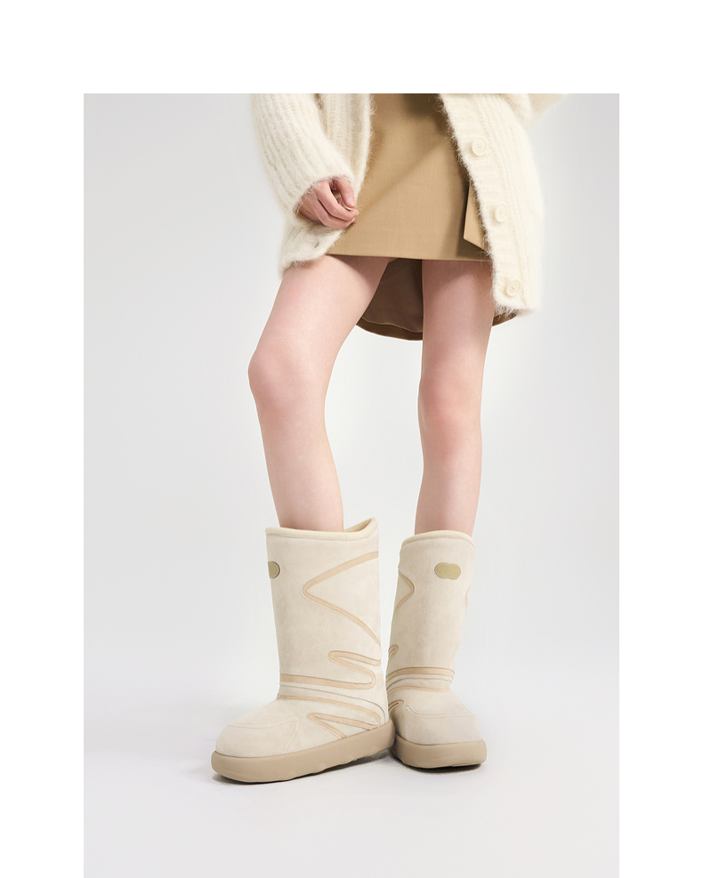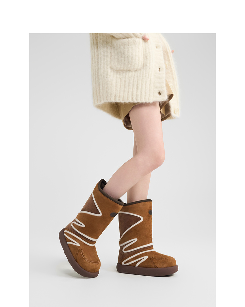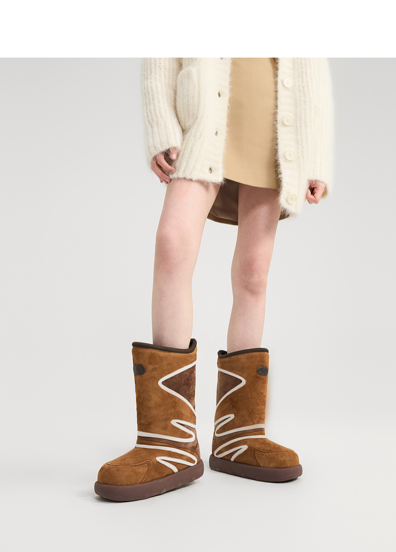 lost in echo2024秋冬新款西部风拼接厚底加绒保暖中筒雪地靴女