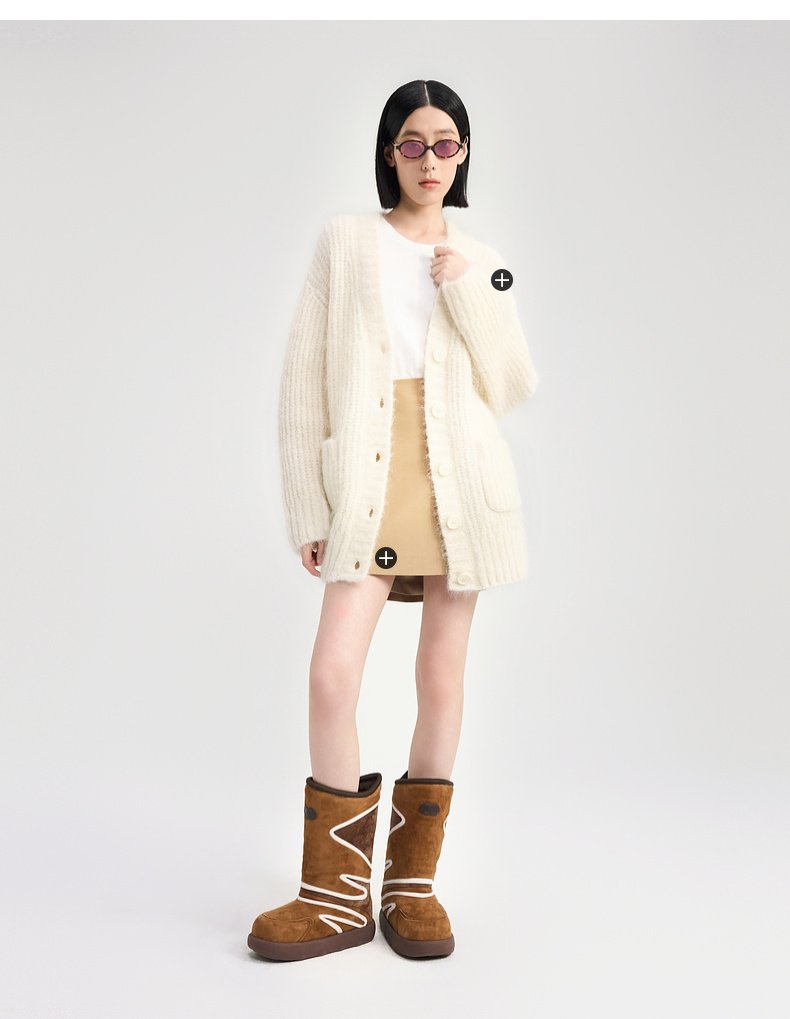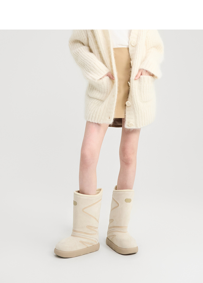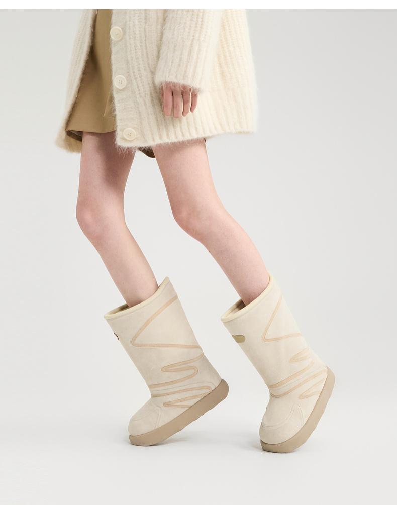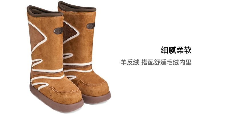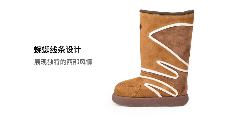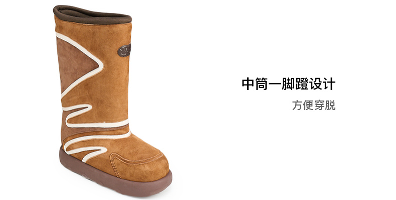 lost in echo2024秋冬新款西部风拼接厚底加绒保暖中筒雪地靴女